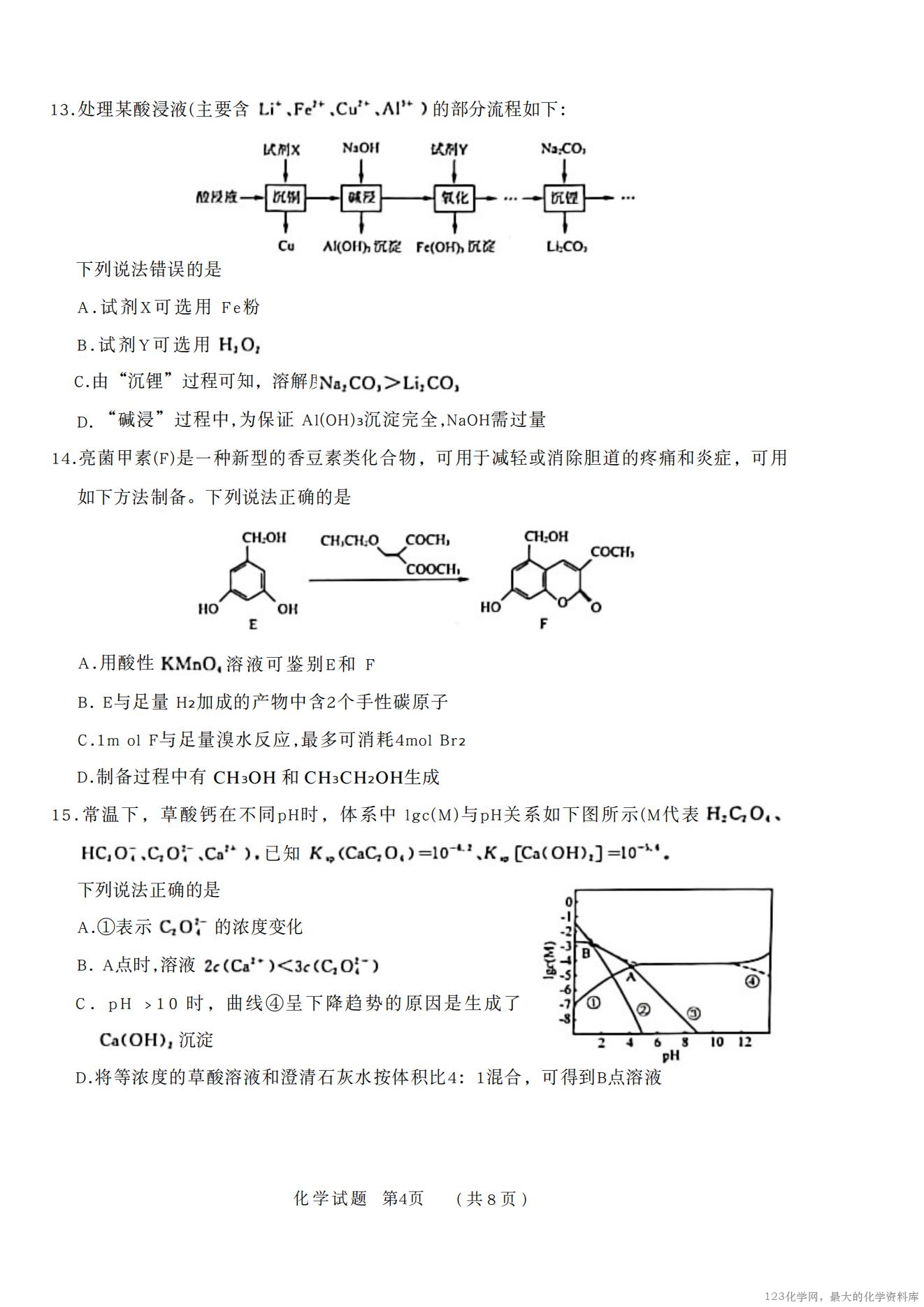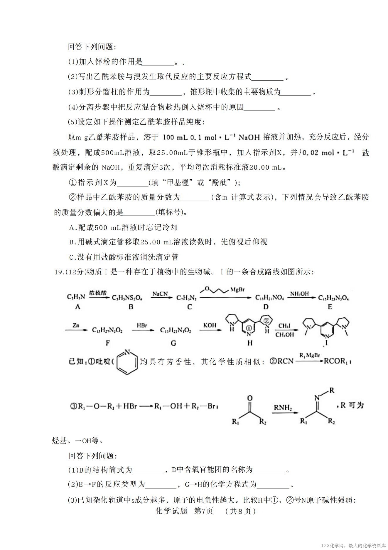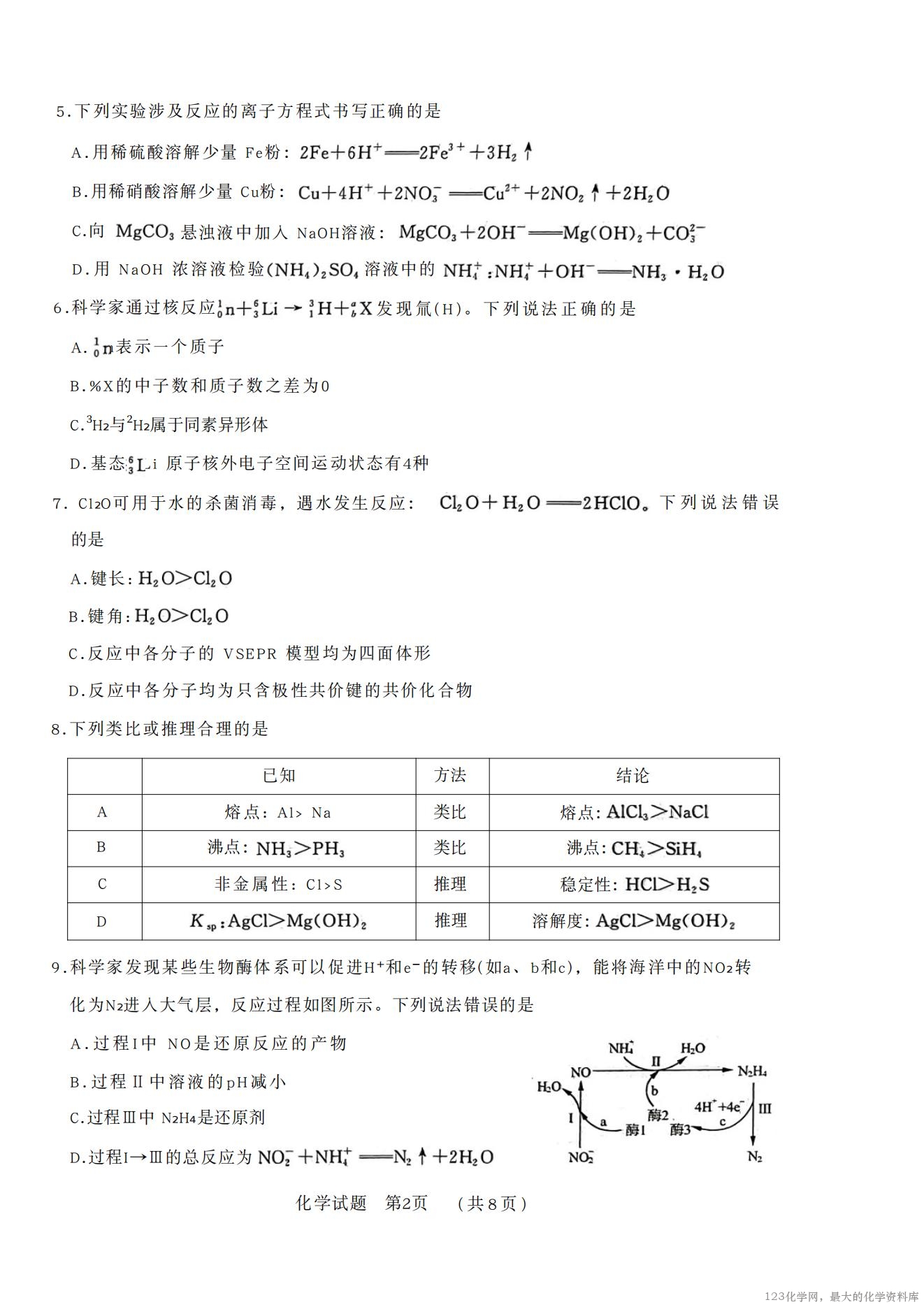 山东省名校考试联盟2025-2026学年高三开学摸底考试(9.4-9.5)化学试卷缺答案