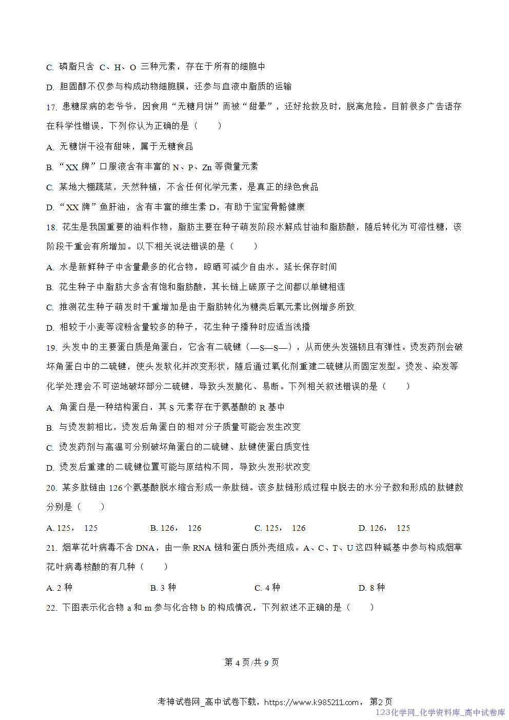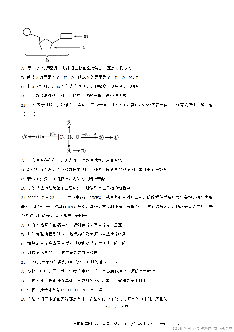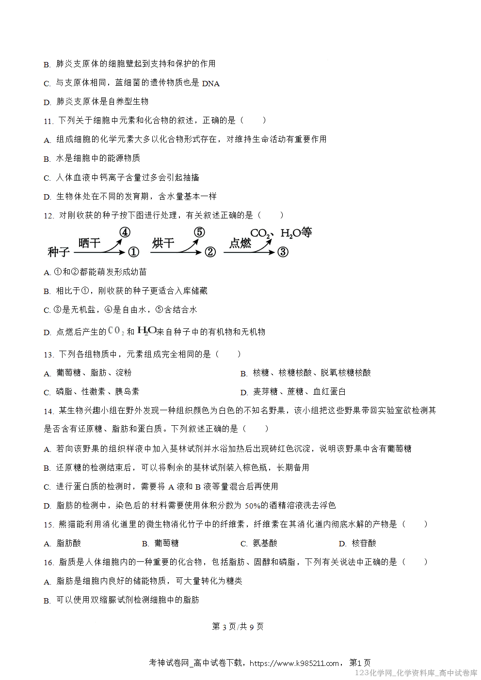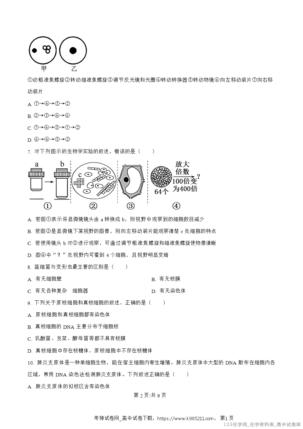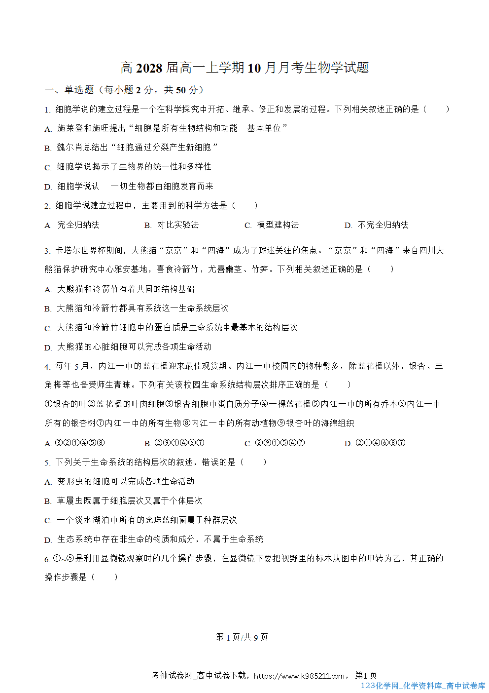 2.四川省内江市第一中学2025-2026学年高一上学期10月月考生物试题(原卷版)