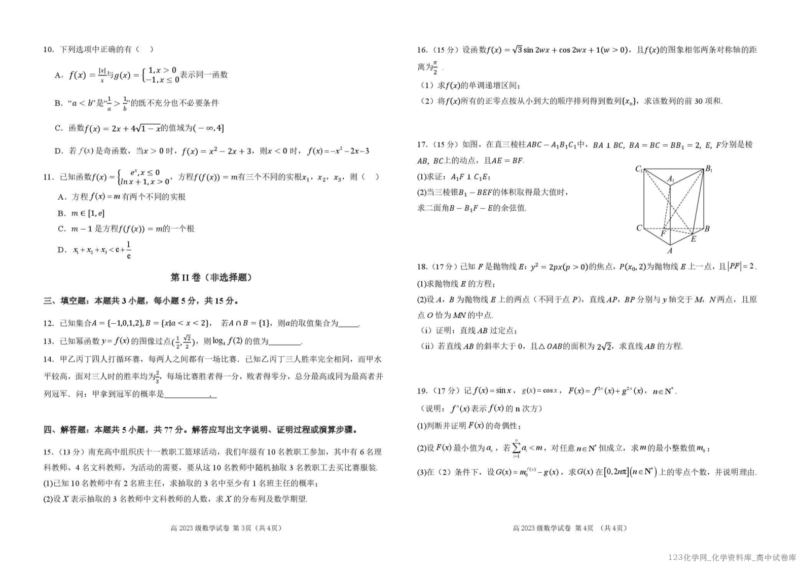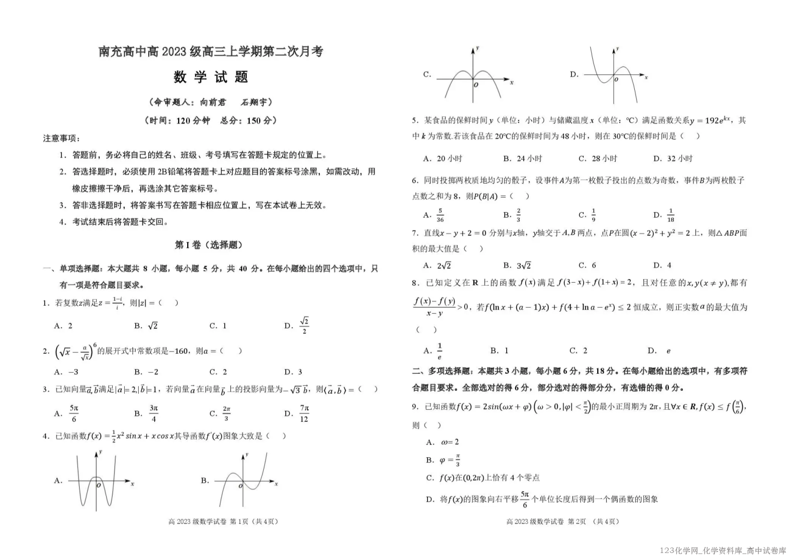 1.南充高中2025-2026学年高三上学期第二次月考数学