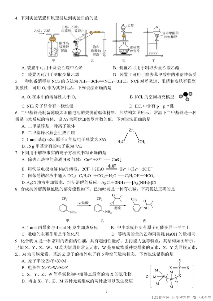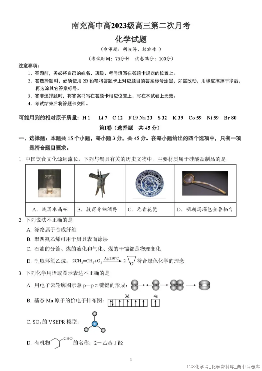 2.南充高中2025-2026学年高三上学期第二次月考化学