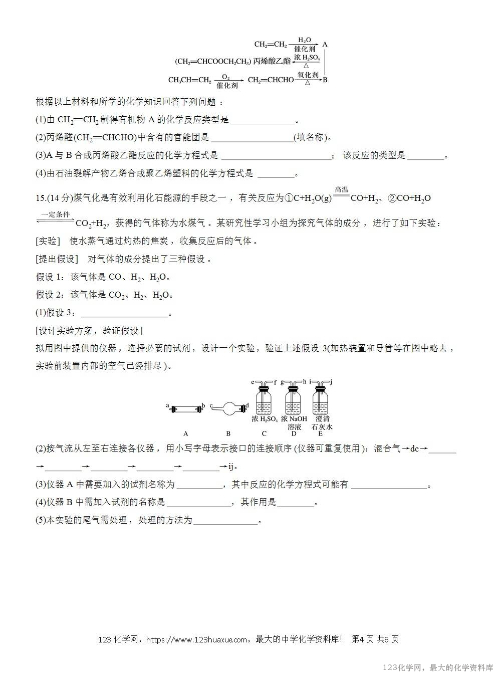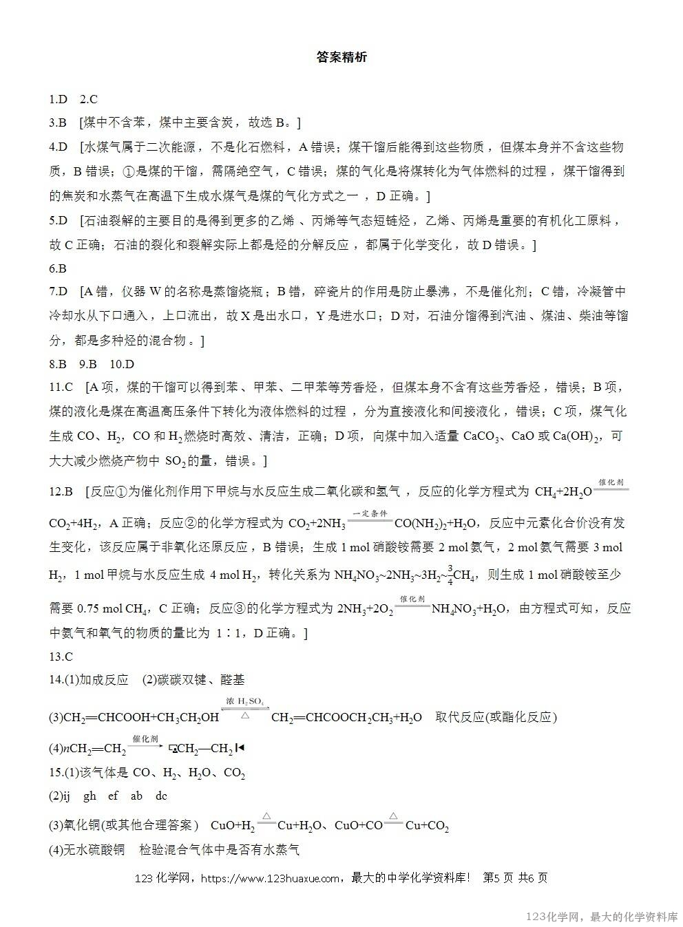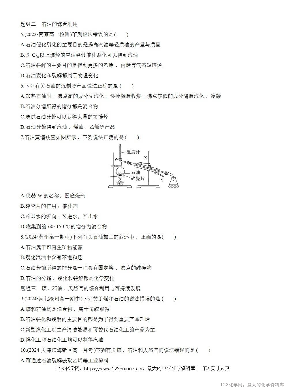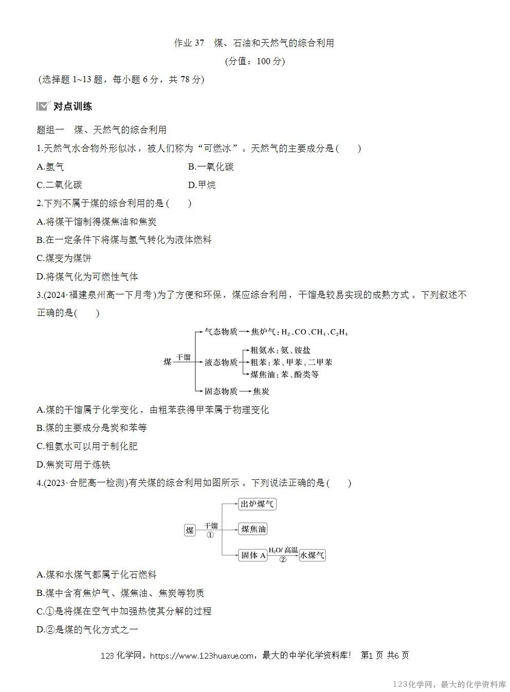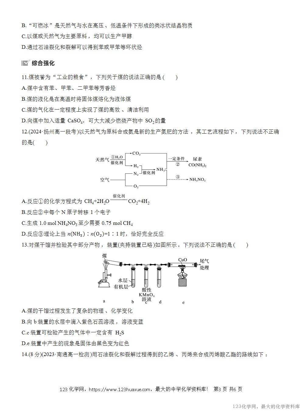 3.(2024·福建泉州高一下月考)为了方便和环保,煤应综合利用,干馏是较易实现的成熟方式。下列叙述不正确的是( )