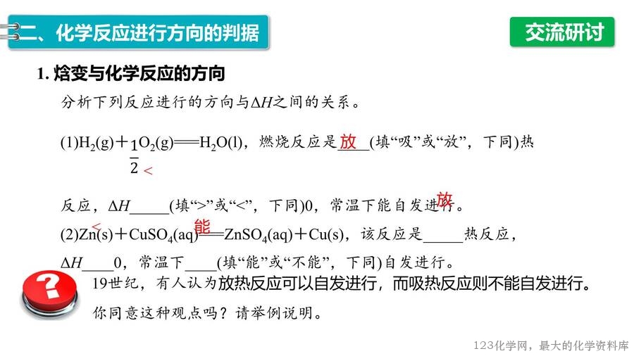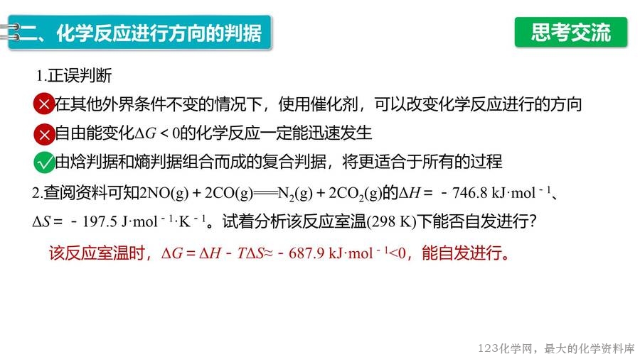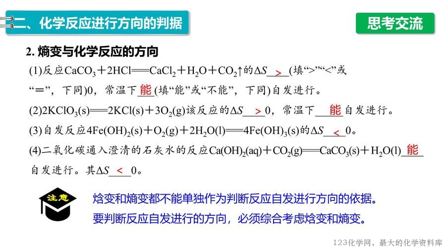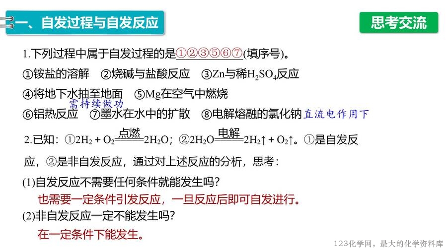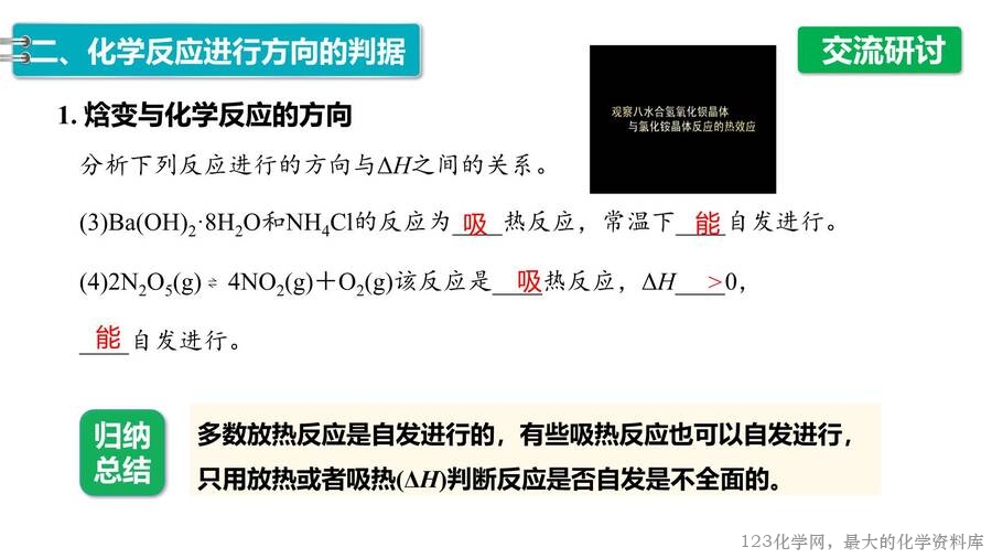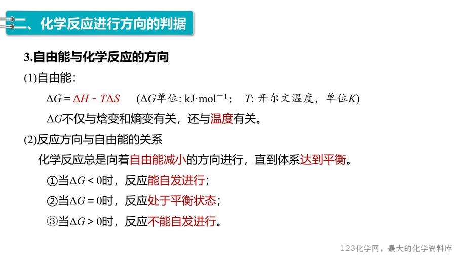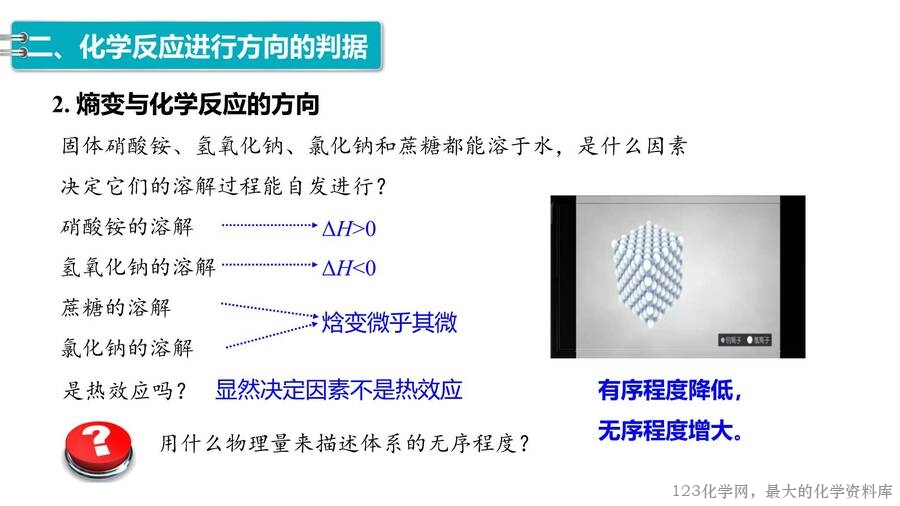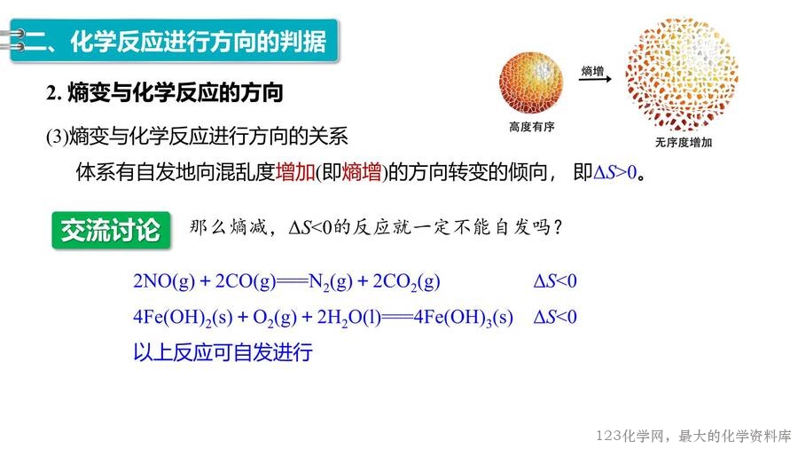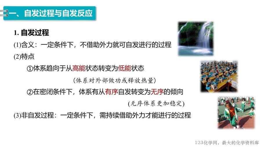 2025年秋高中化学优质课件《化学反应原理》第2章第3节化学反应的方向,每份课件画面精美,排版合理,老师们还可以根据自己的实际情况任意修改,课件已经内嵌了课堂上需要使用的视频和图片,使用非常方便。123化学网只提供图片形式的预览,完整的原始课件请老师们下载后使用。