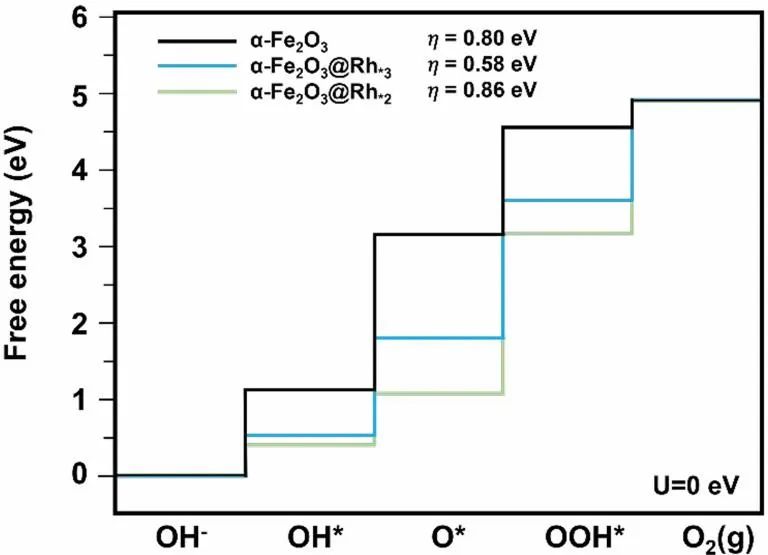 2 α-Fe2O3@Rh*3α-Fe2O3@Rh*2的自由能和计算过电位。DOI:10.1021/acsami.3c04458