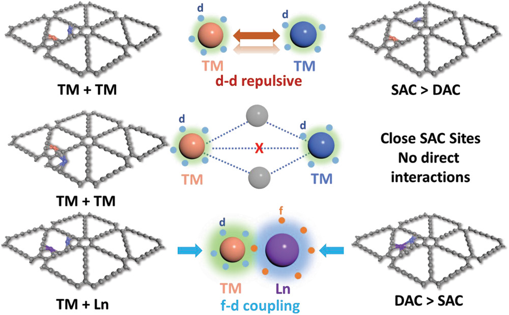 图7. 双原子催化剂(DAC)发展示意图。不同金属的组合会带来差异化的相互作用,并最终生成各异的合成产物。DOI: 10.1002/aenm.202003796