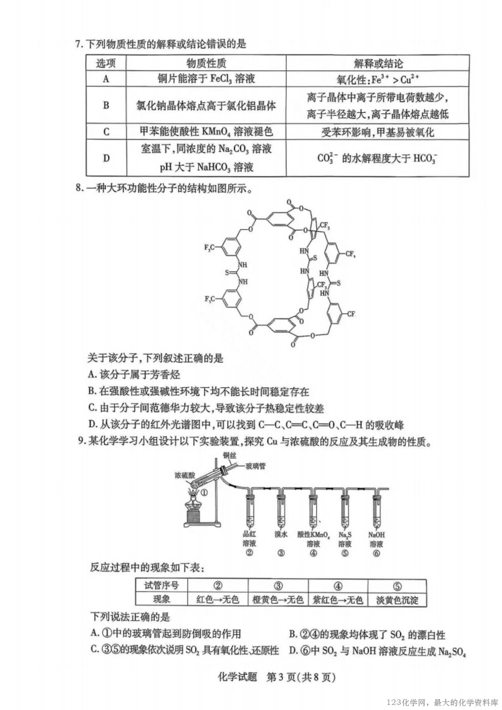 河南省天一大联考2025-2026学年(上)高三年级9月开学考(9.4-9.5)化学试卷含答案