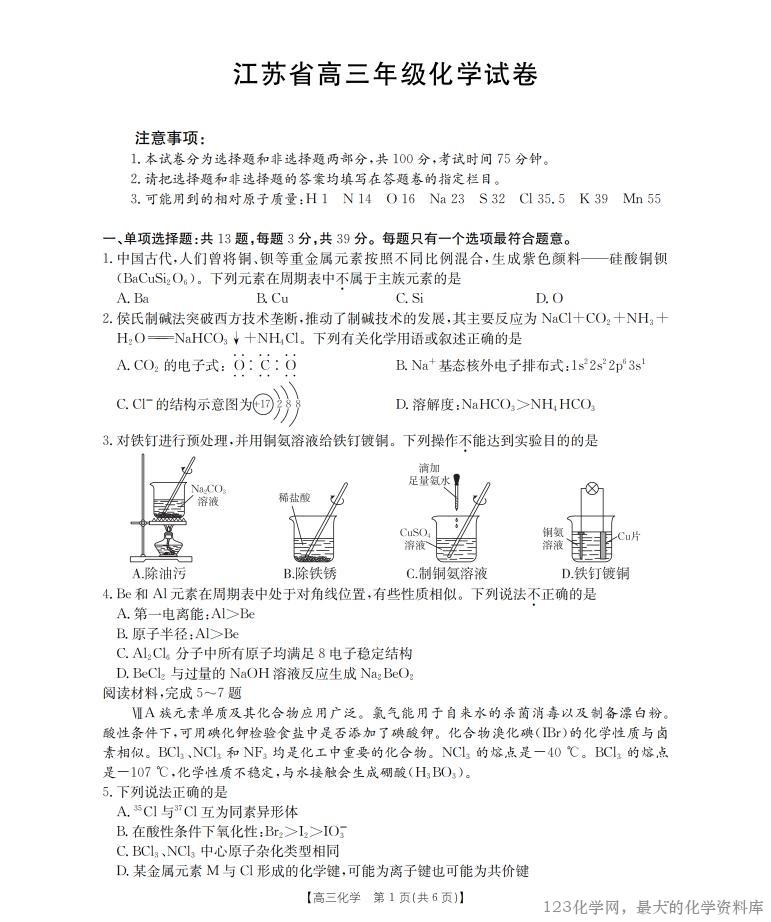 1.江苏省金太阳2026届高三上学期8月联考(25-19C)化学