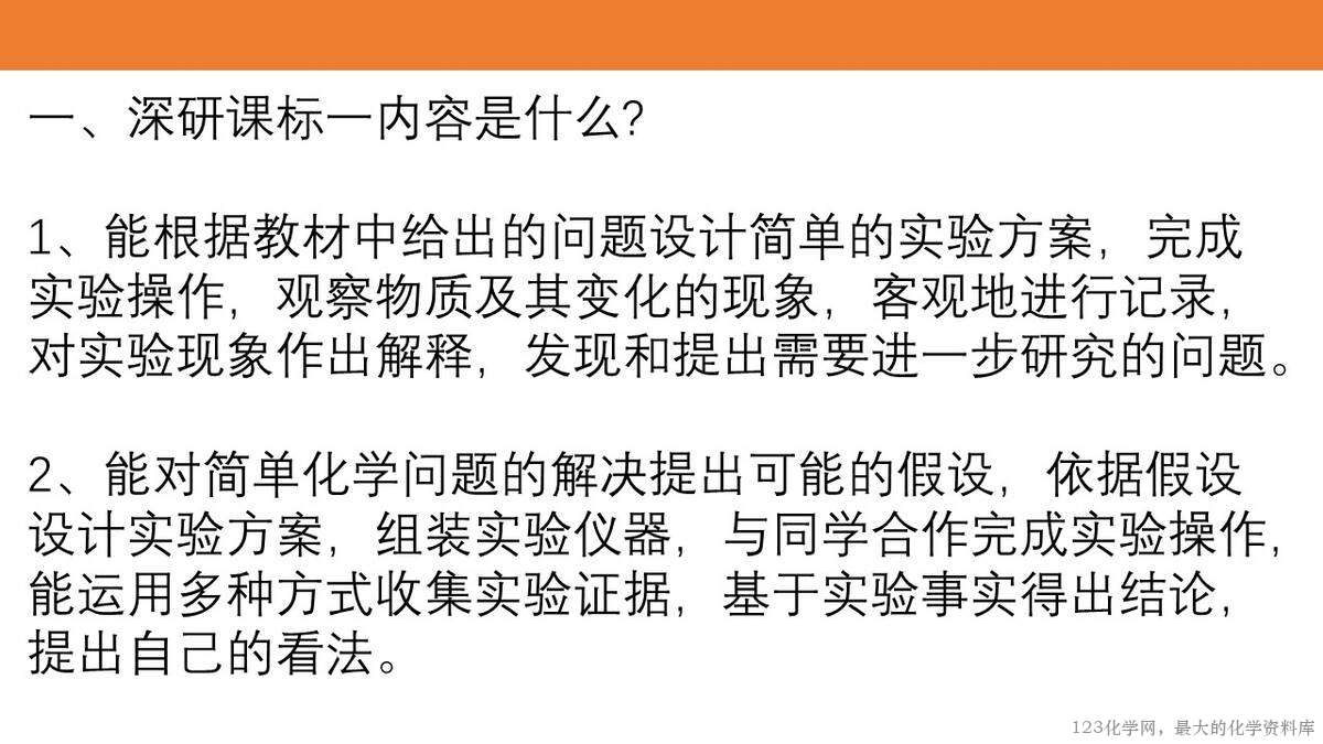 2、能对简单化学问题的解决提出可能的假设,依据假设设计实验方案,组装实验仪器,与同学合作完成实验操作,能运用多种方式收集实验证据,基于实验事实得出结论,提出自己的看法。
