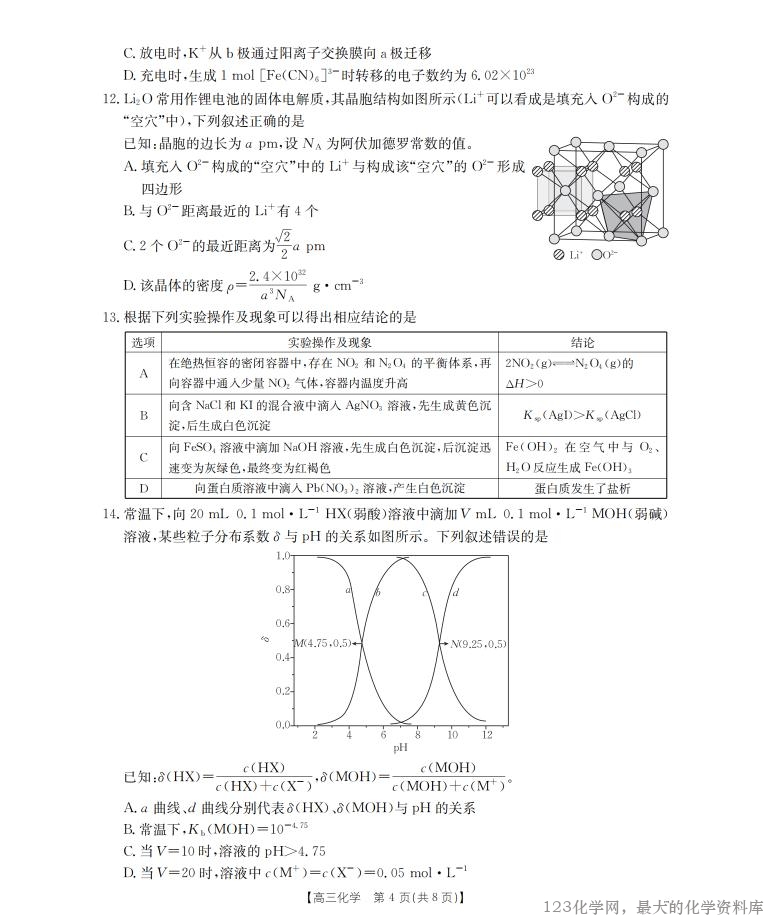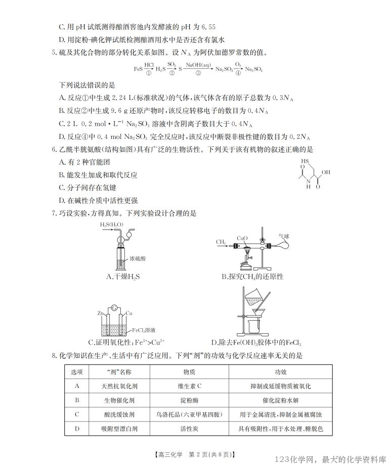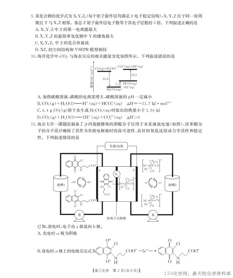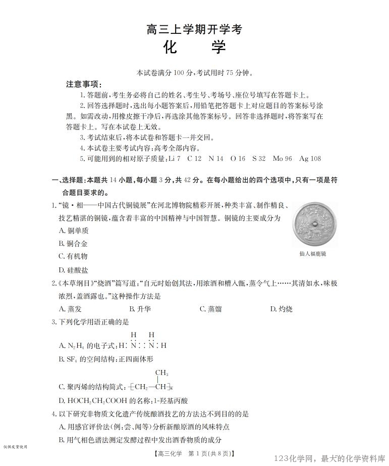 金太阳河北省2026届高三上学期9月开学联考26-09C化学试卷含答案