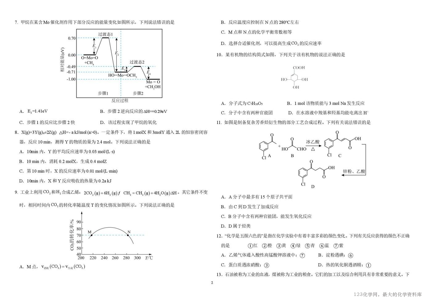 1.化学与环境、材料、生产、生活密切相关。下列说法错误的是