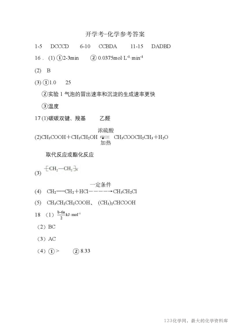 山西现代双语学校南校2025-2026学年高二上学期开学质量监测化学试卷含答案