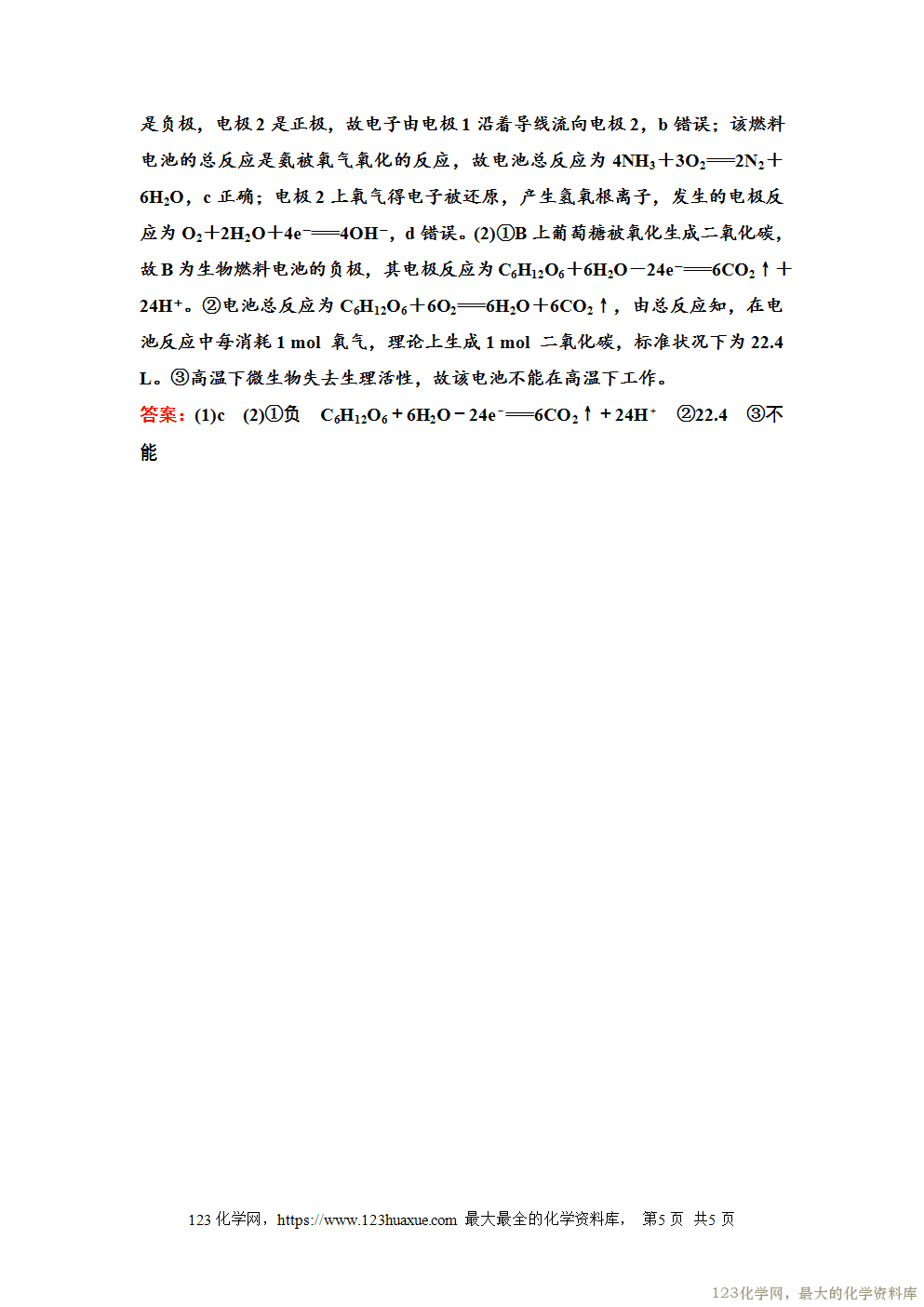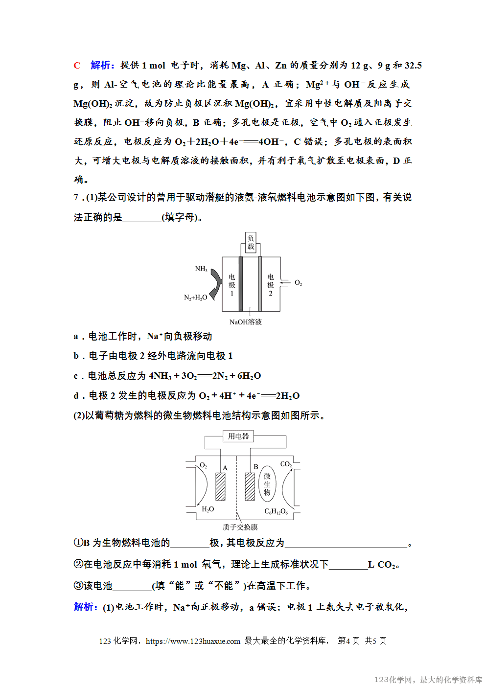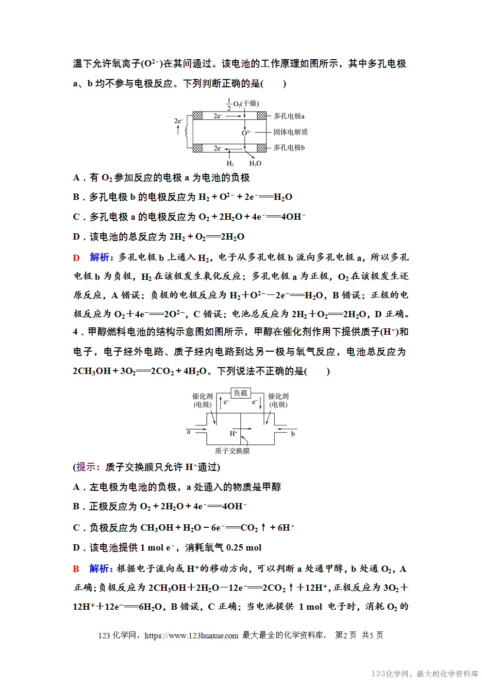D 解析:多孔电极b上通入H2,电子从多孔电极b流向多孔电极a,所以多孔电极b为负极,H2在该极发生氧化反应;多孔电极a为正极,O2在该极发生还原反应,A错误;负极的电极反应为H2+O2--2e-===H2O,B错误;正极的