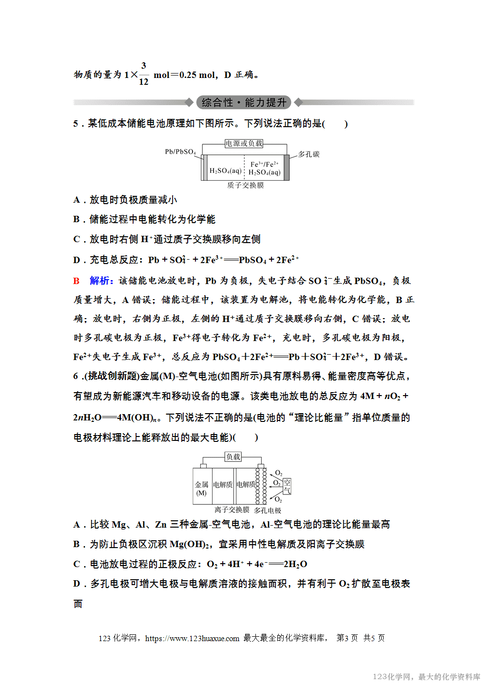 2025年秋季高中化学人教版选择性必修1《化学反应原理》17 课后素养评价(十七)化学电源word版含答案
