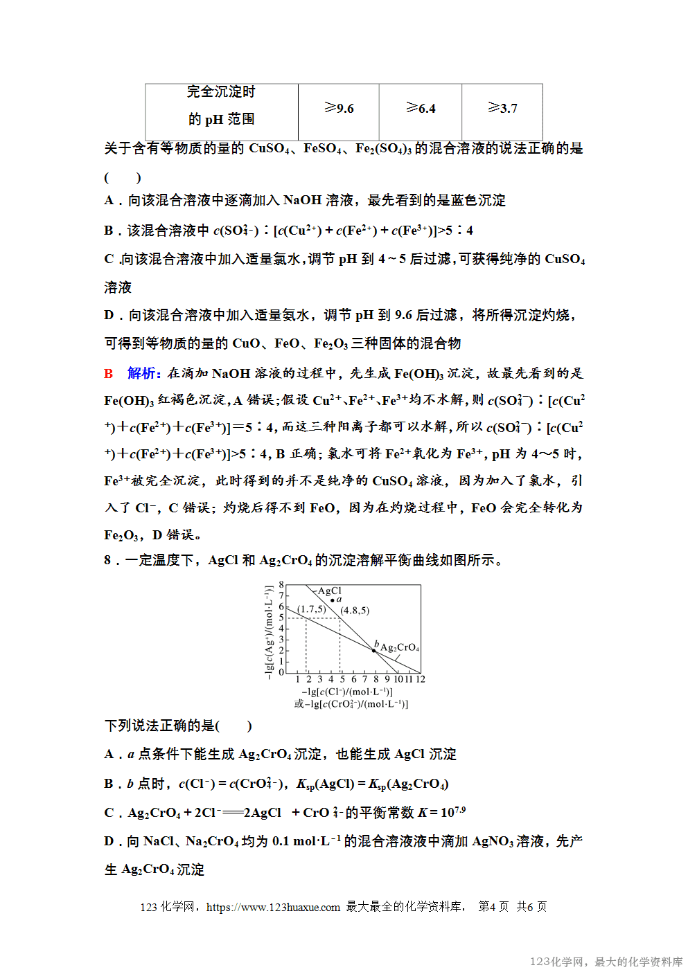 章节:选必1-3-4沉淀溶解平衡 日期: 类别:练习 教材:人教版