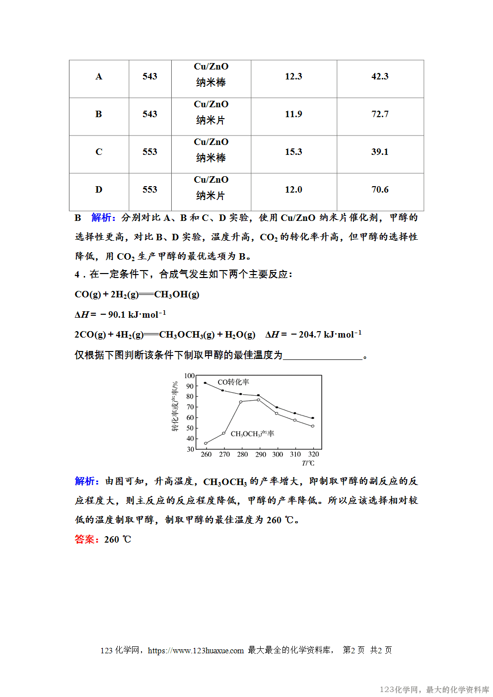 3.已知催化剂和反应条件与反应物的转化率和产物的选择性高度相关。控制相同投料比和相同反应时间,得到下列四组实验数据,则用CO2生产甲醇的最优