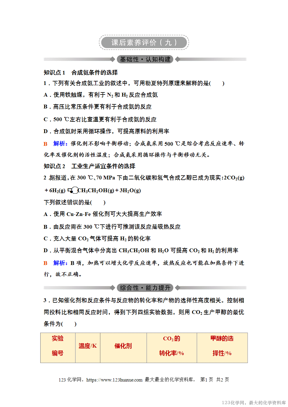 2025年秋季高中化学人教版选择性必修1《化学反应原理》09 课后素养评价(九)化学反应的调控word版含答案