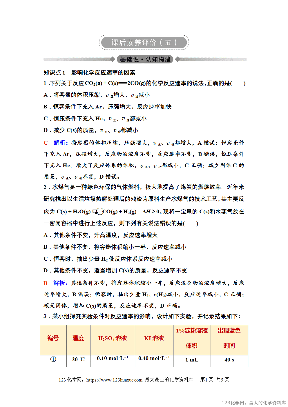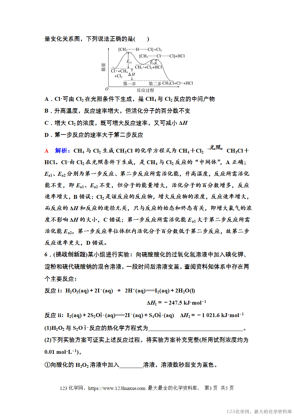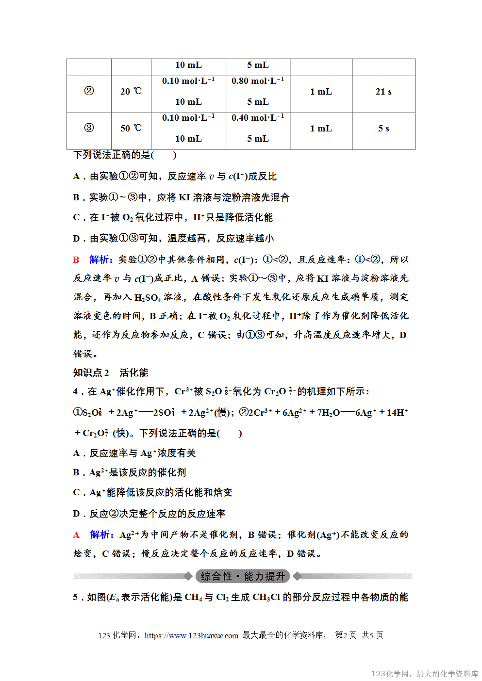 2025年秋季高中化学人教版选择性必修1《化学反应原理》05 课后素养评价(五)影响化学反应速率的因素 活化能word版含答案