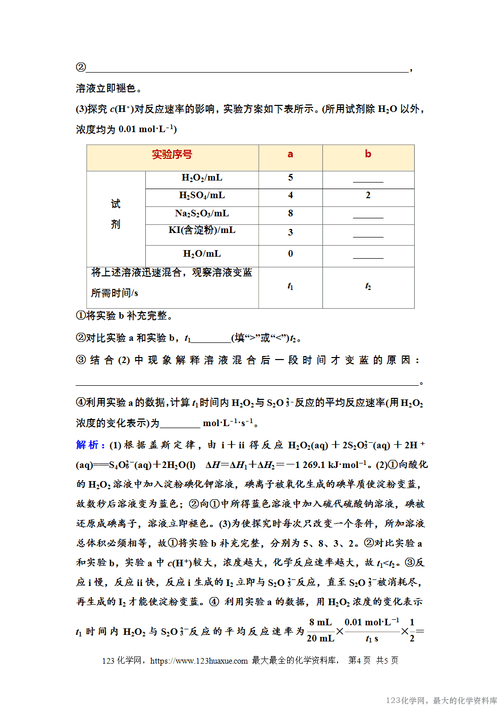 3.某小组探究实验条件对反应速率的影响,设计如下实验,并记录结果如下: