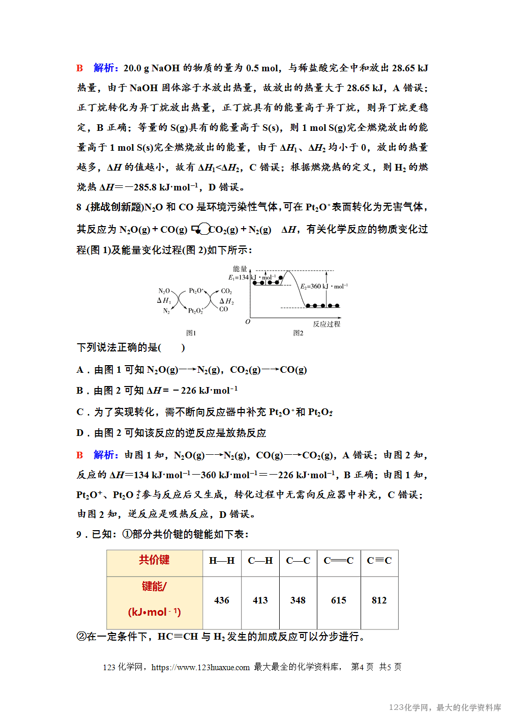 D 解析:0.25 mol N2H4(g)完全燃烧生成氮气和气态水时,放出133.5 kJ热量,则1 mol N2H4(g)完全燃烧生成氮气和气态水时,放出133.5 kJ×4=534 kJ热量,D正确。