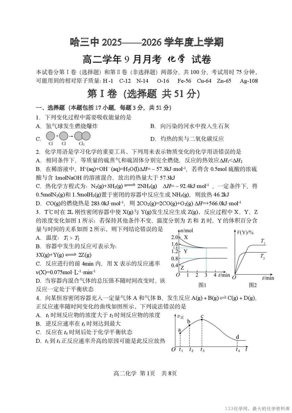 3.T℃时在 2L,刚性密闭容器中使 X(g)与 Y(g)发生反应生成 Z(g)。反应过程中X、Y、Z
