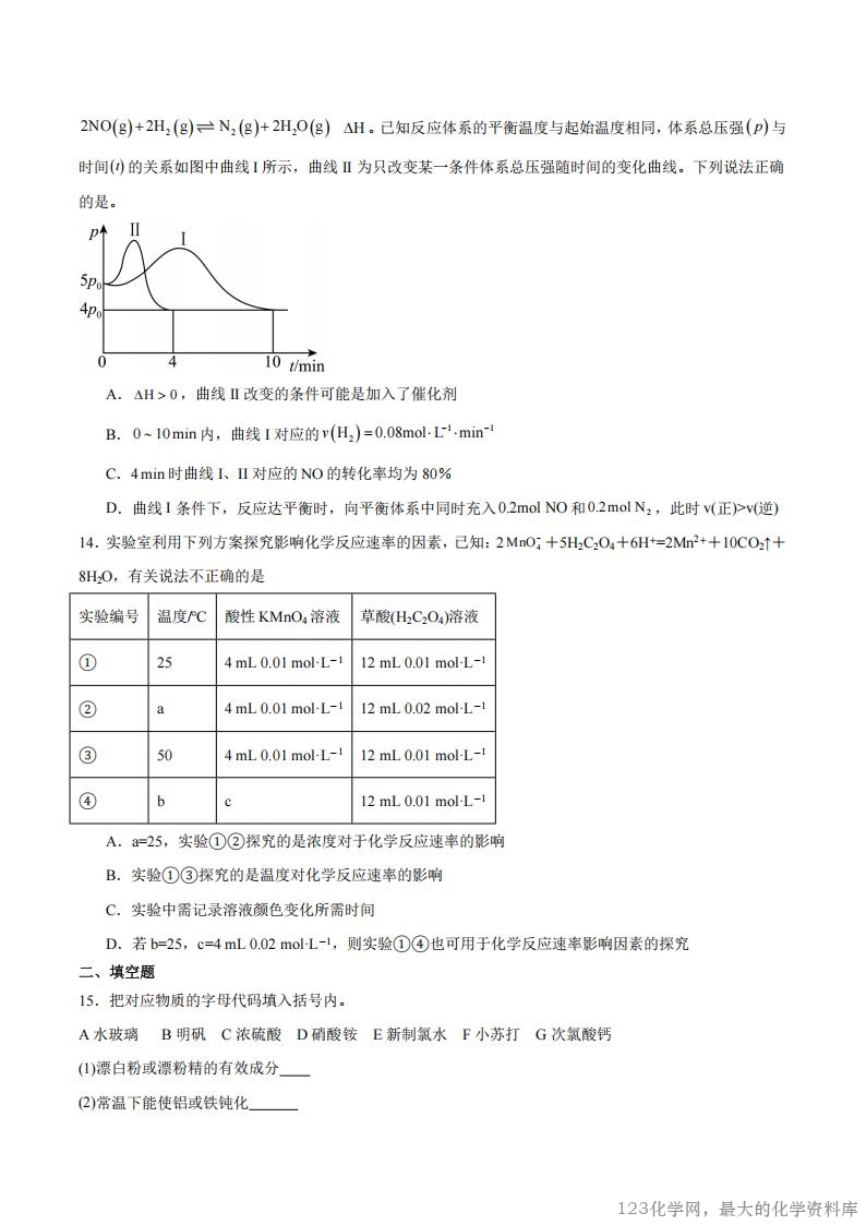 重庆市彭水第一中学2025—2026学年高二上学期开学检测化学试卷含答案