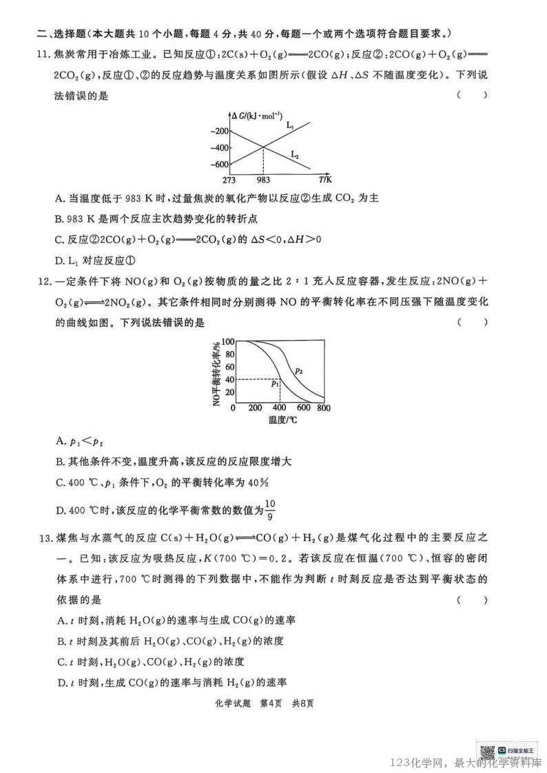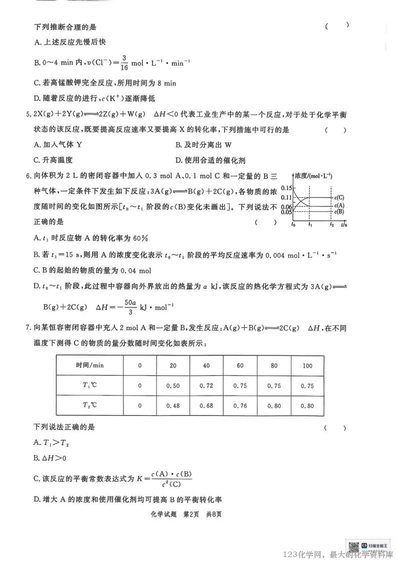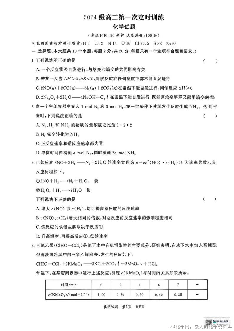 3.已知反应2N0+2H2- -N2 +2H2O的速率方程为v= kc"(NO)●c(H2)(k为速率常数),其