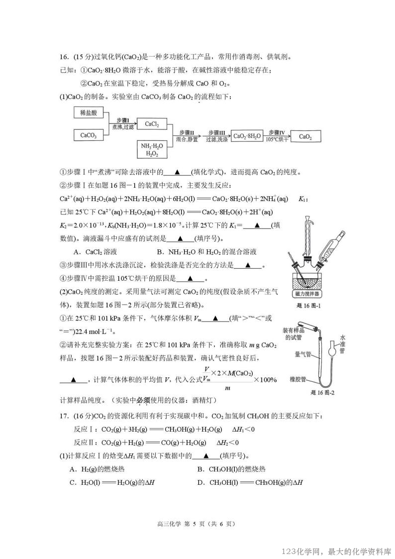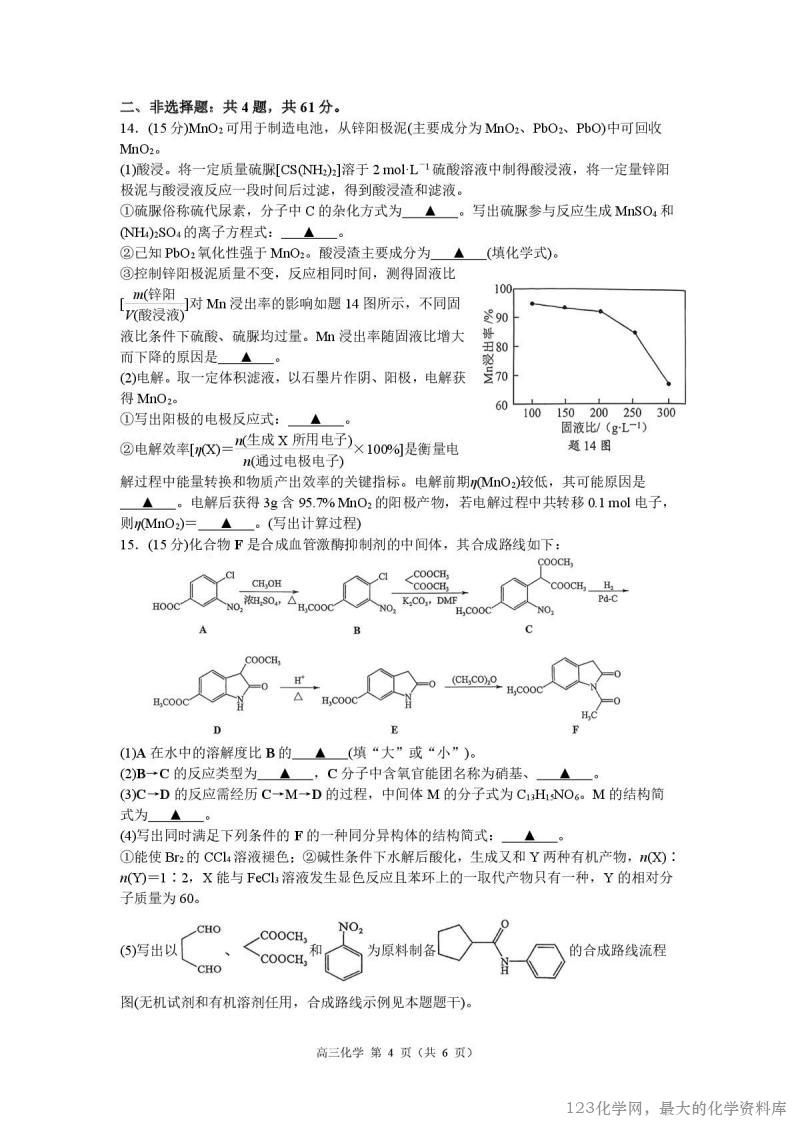 可能用到的相对原子质量: H1 C12 N14 016 S32 Ca40 Mn55 Ce 140