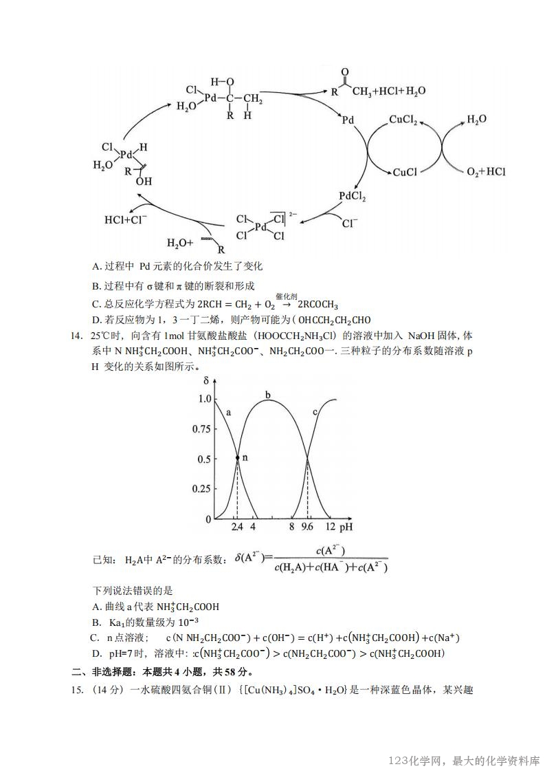 一、选择题:本题共14小题,每小题3分,共42分。每小题只有一-个选项符合题目要求。
