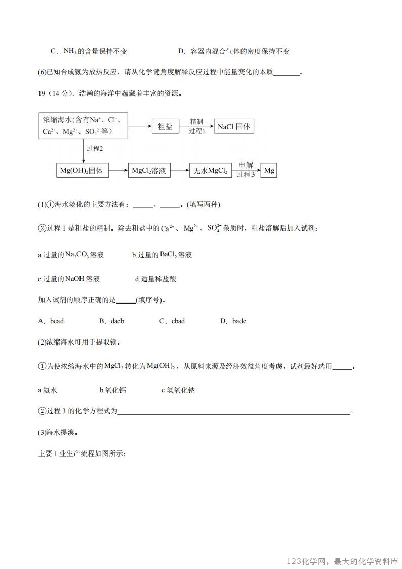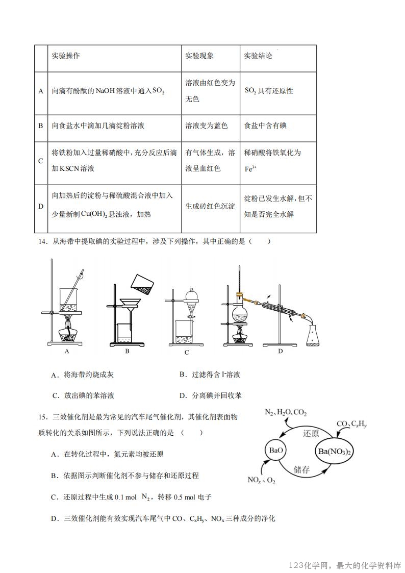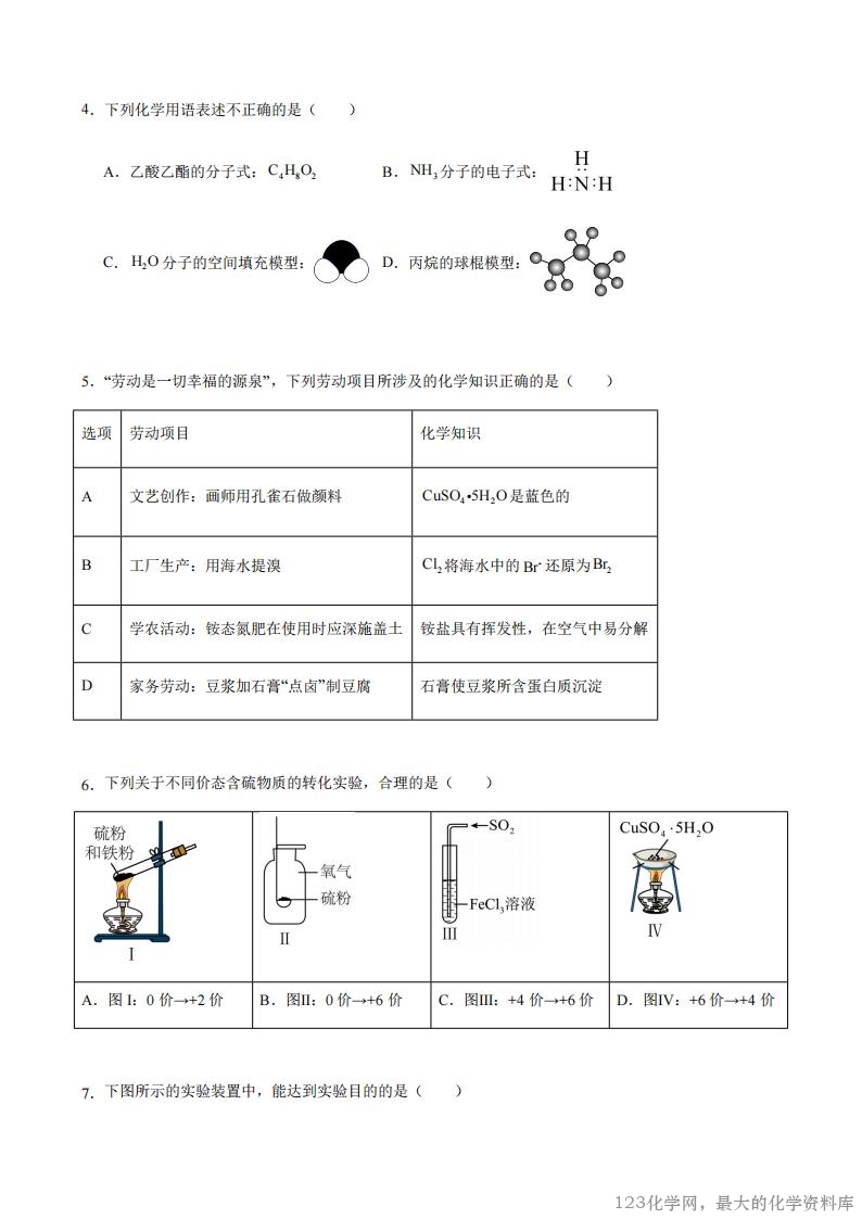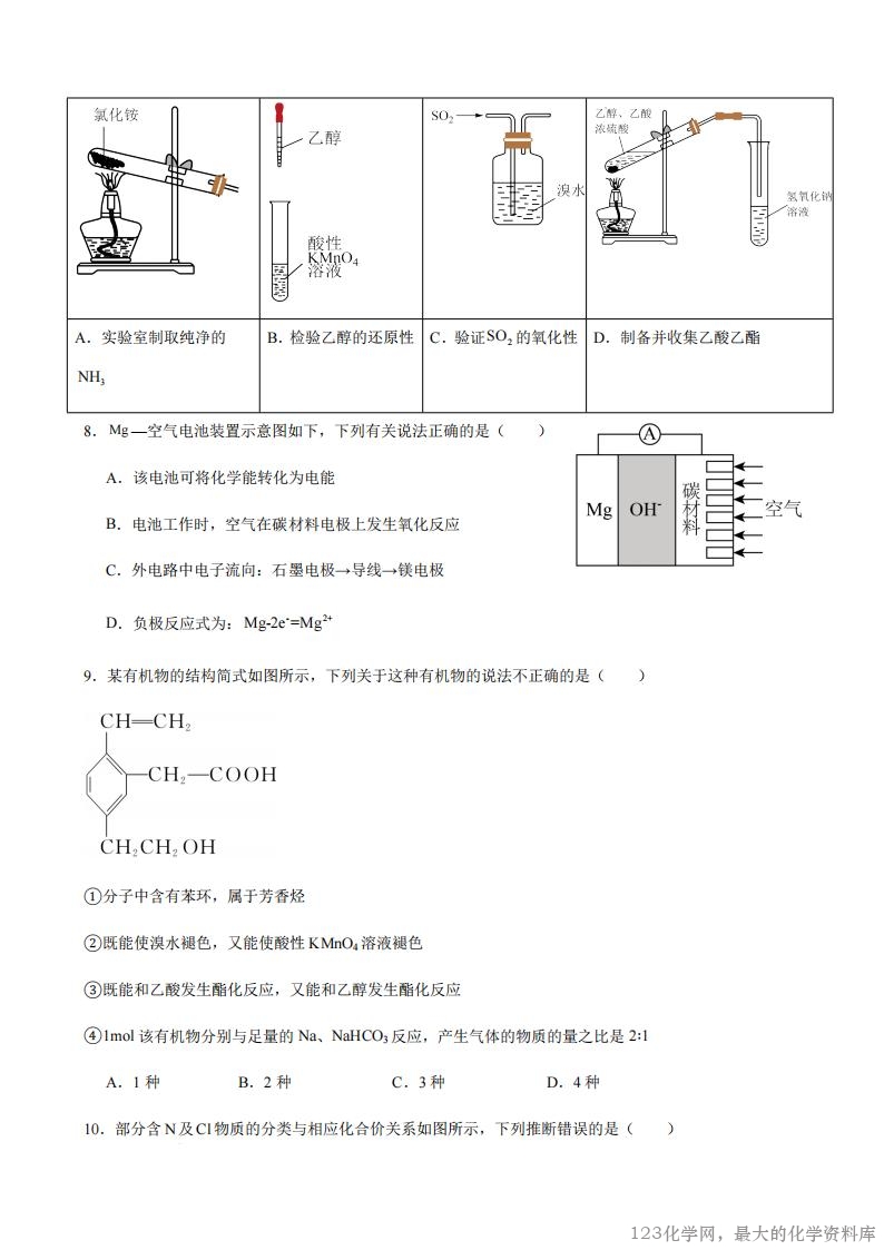 2.我国的能源结构中,化石能源仍然占有相当大的比例。下列关于能源的说法正确的是( ) A.天然气是清洁的化石燃料,属于一级能源,可用于合成氨 B.石油分馏得到的各种馏分都是纯净物 C.神舟十三号载人飞船返回舱的烧蚀防热涂层以苯基橡胶为基体,工业上制备苯基橡胶的原料苯可来 自煤的干馏或石油的分馏 D.石油催化裂化的主要目的是得到乙烯、丙烯等化工原料 3.化学与人类生活、社会发展密切相关。下列说法正确的是( ) A.谷氨酸钠常用作防腐剂,以延长食物保质期 B.我国自主研发的“北斗系统”中使用的芯片的主要材料为二氧化硅 C.糖类、油脂、蛋白质属于人体所需营养物质,均属于有机高分子化合物 D.等质量的甲醛、乙酸、葡萄糖充分燃烧,消耗氧气的质量相等