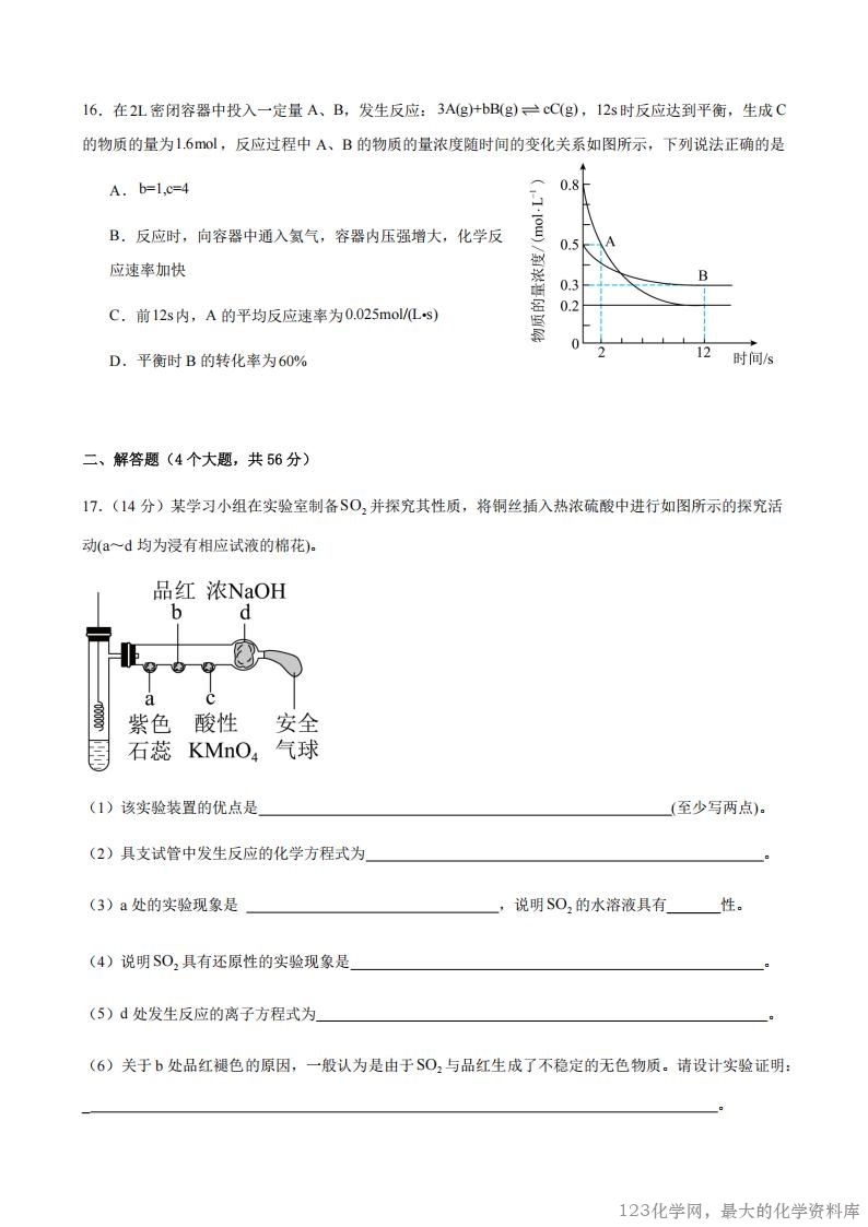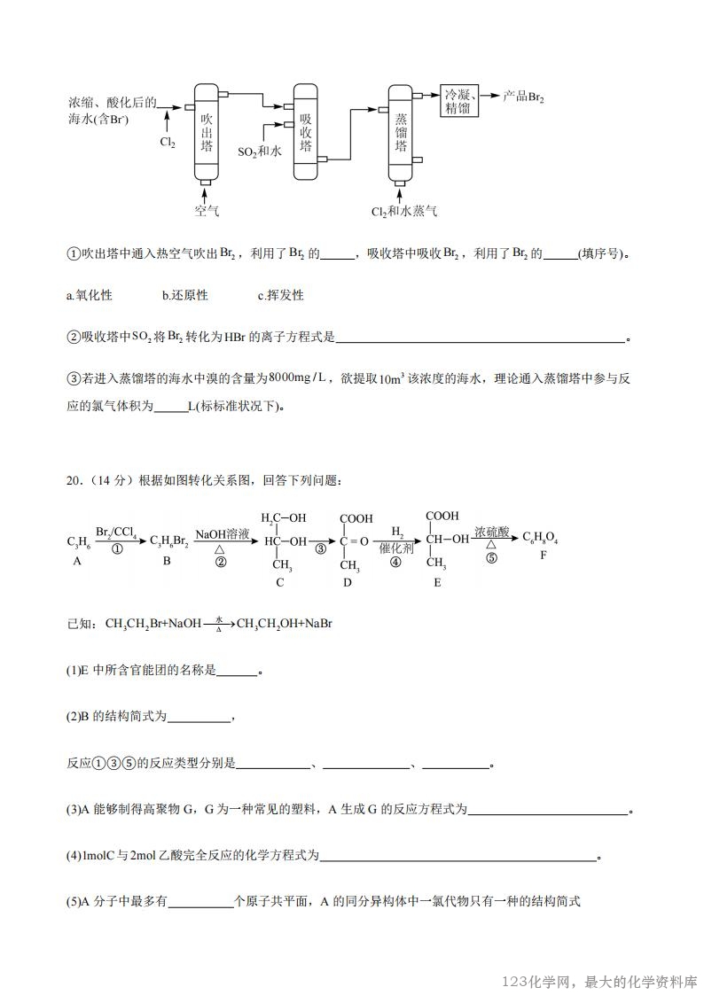 1.阳江三中2025--2026学年度第一学期开学考试化学试卷答案