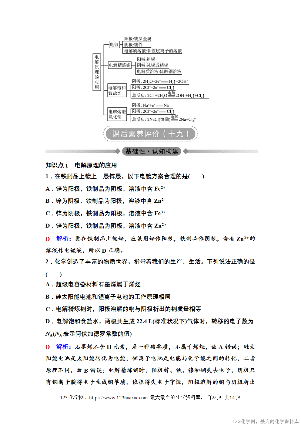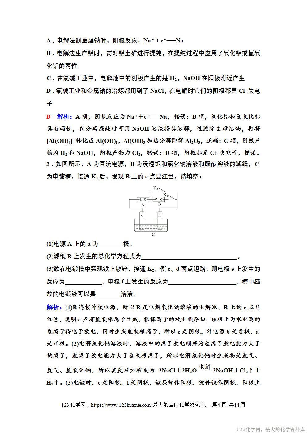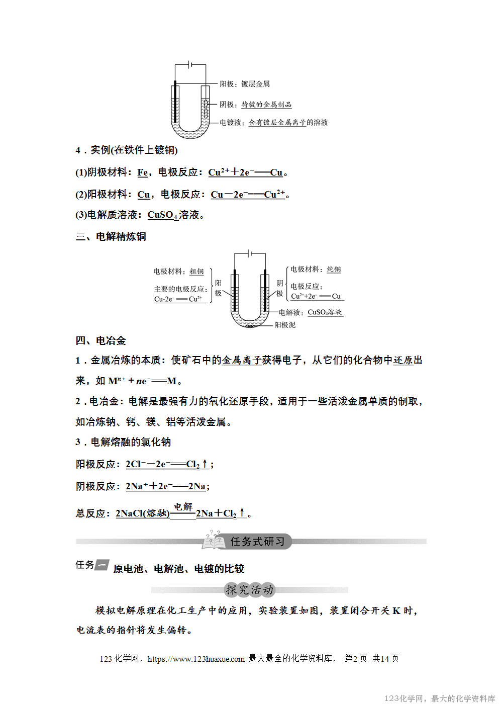 2.电冶金:电解是最强有力的氧化还原手段,适用于一些活泼金属单质的制取,如冶炼钠、钙、镁、铝等活泼金属。