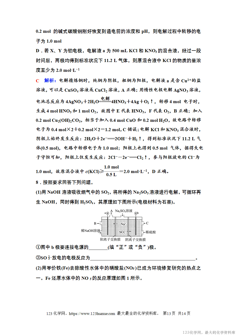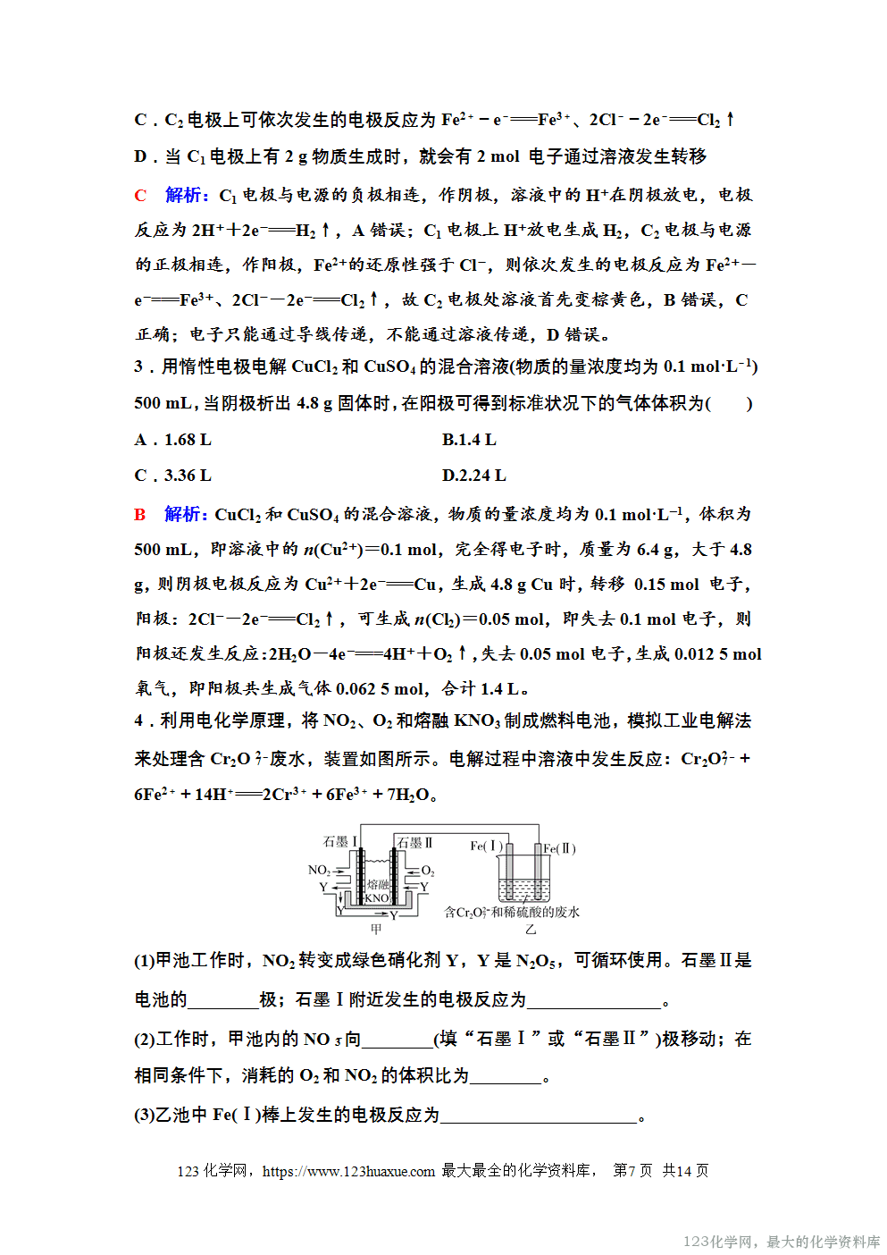 (1)阴极材料:Fe,电极反应:Cu2++2e-===Cu。