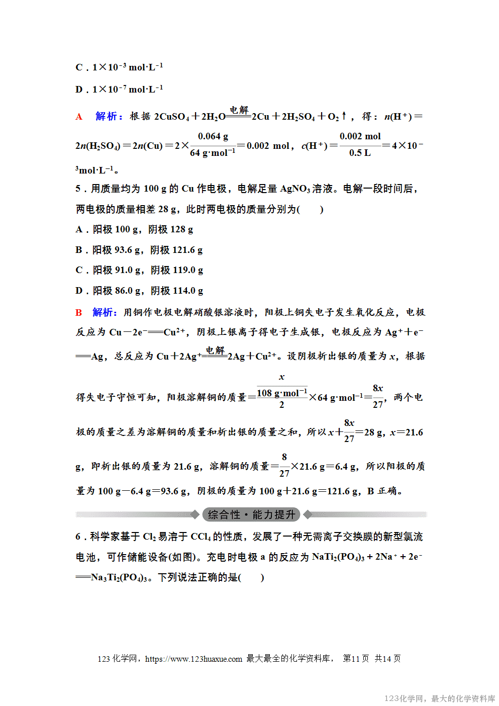 (2)阳极材料:Cu,电极反应:Cu-2e-===Cu2+。