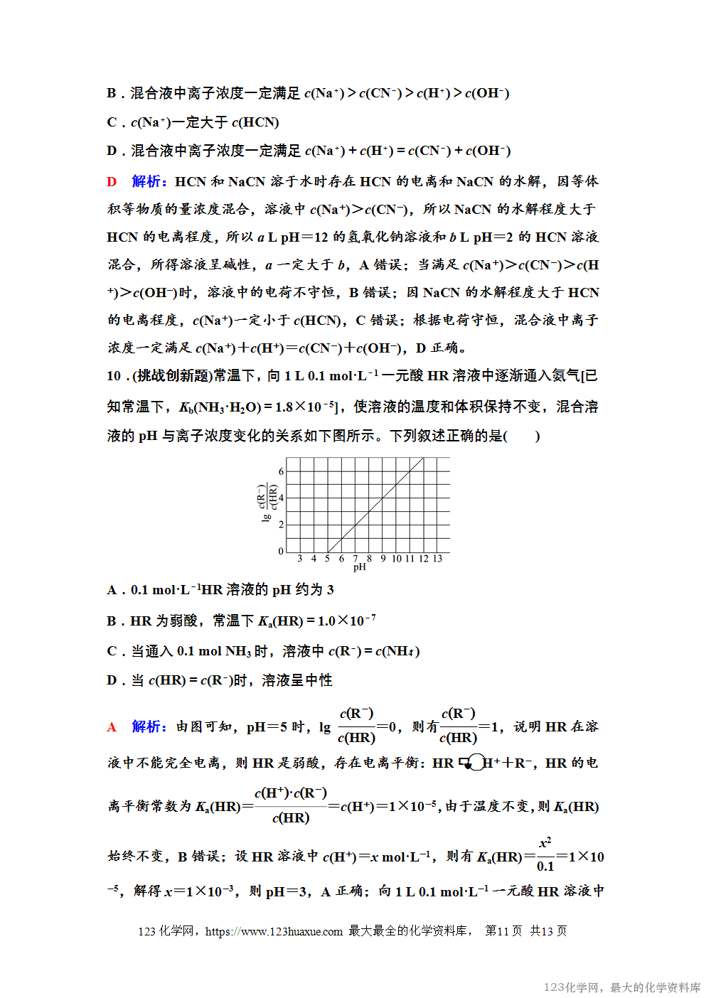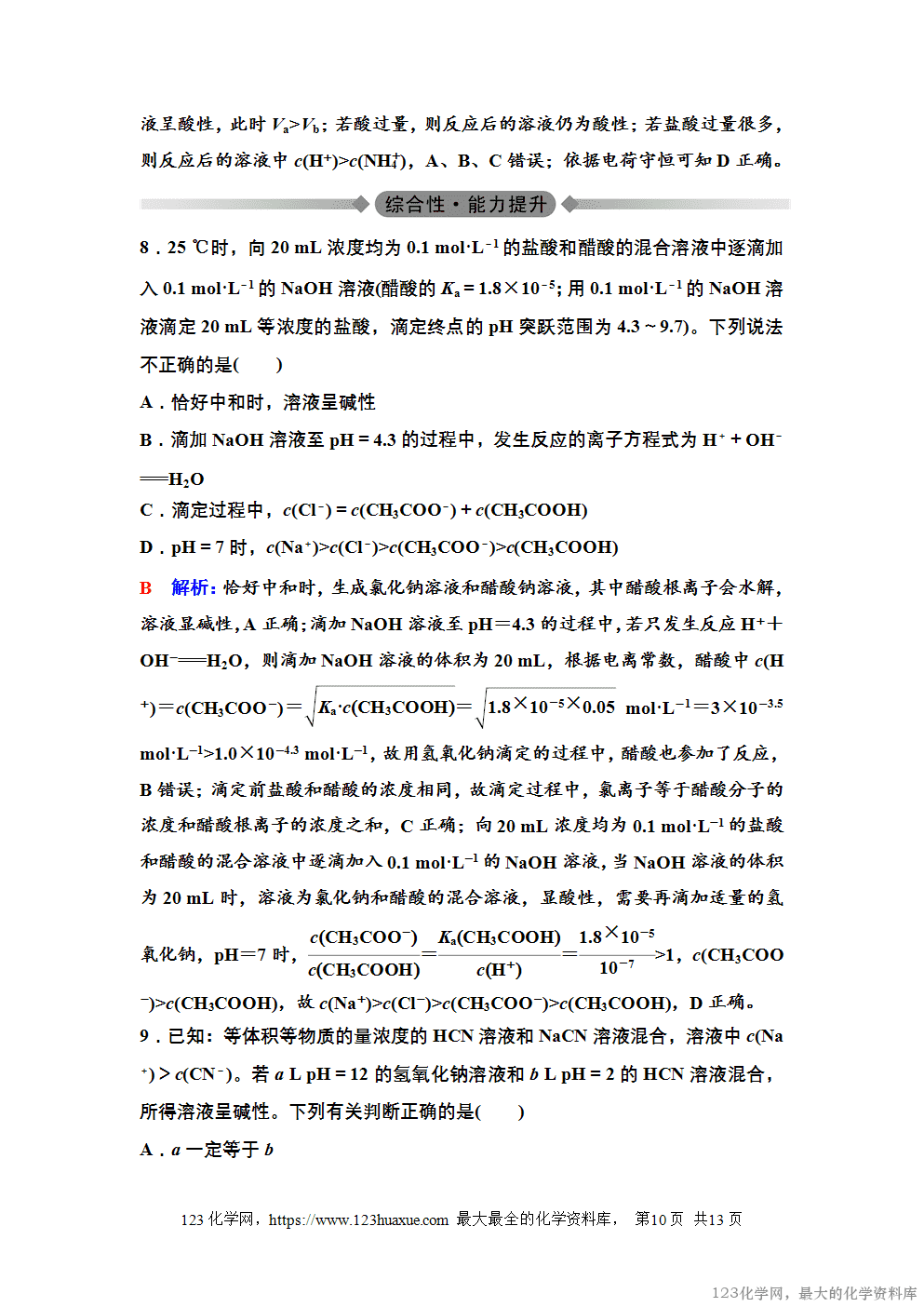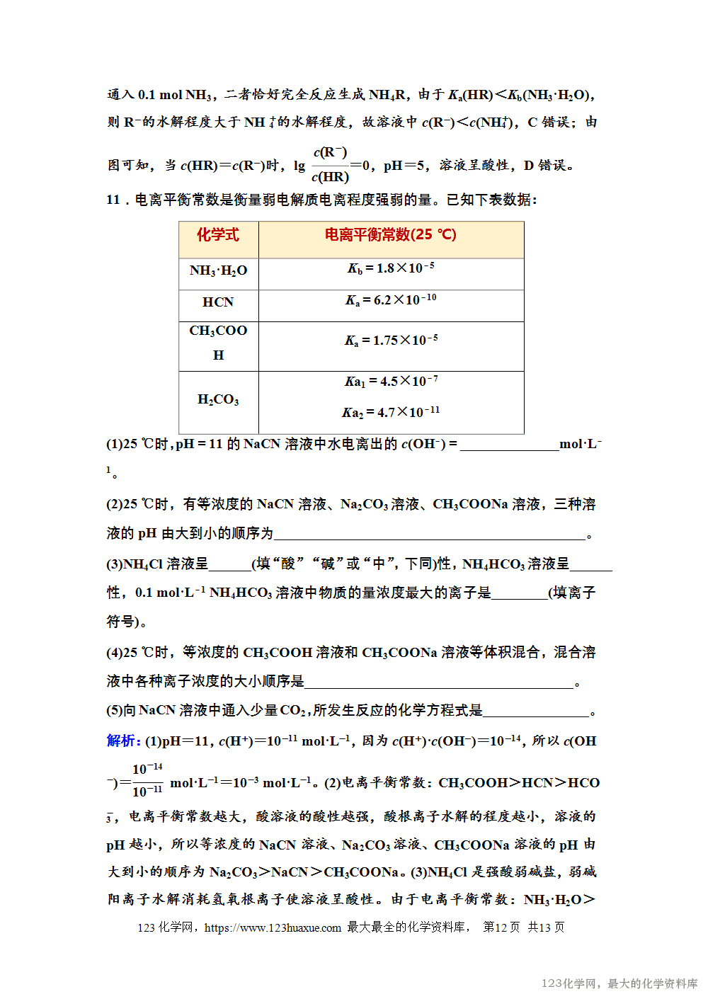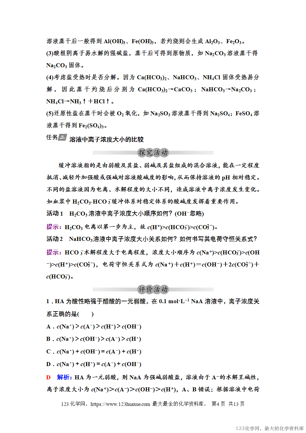B 解析:热的纯碱溶液因CO水解而呈碱性,油脂在碱性条件下能水解,可用热的纯碱溶液去除油脂,A不符合题意;重油在高温、高压和催化剂作用下发生裂化或裂解反应生成小分子烃,与水解反应无关,B符合题意;蛋白质在酶的作用下可以发生水解反应生成氨基酸,C不符合题意;Fe3+能发生水解反应生成 Fe(OH)3,加热能增大Fe3+ 的水解程度,D不符合题意。