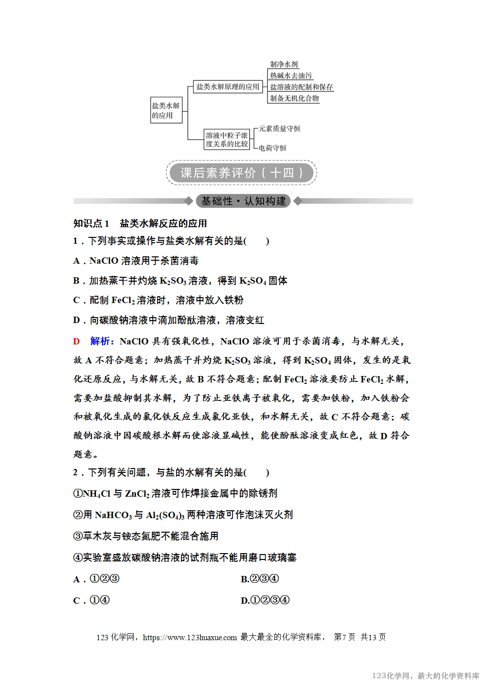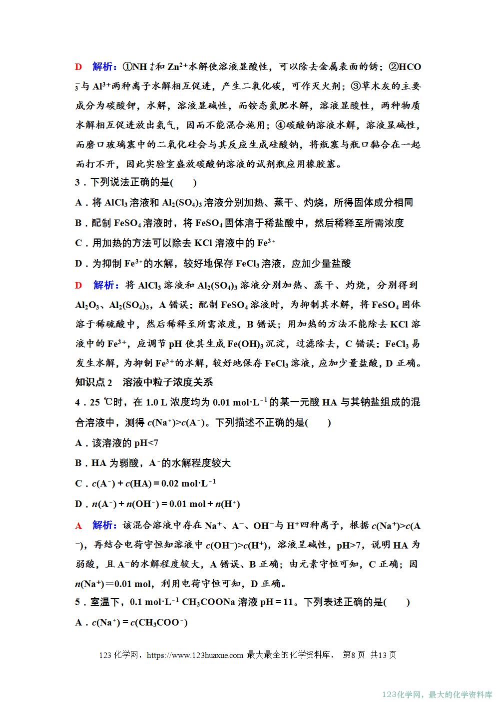 2.下列关于盐类水解的应用中,说法正确的是( )