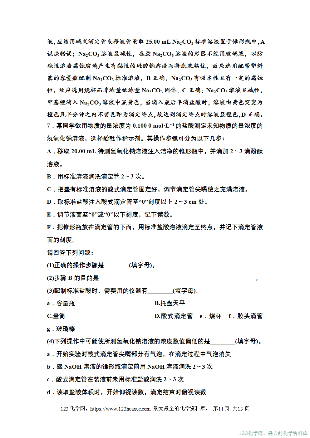 (1)仪器:酸式滴定管、碱式滴定管、铁架台、滴定管夹、锥形瓶、烧杯。