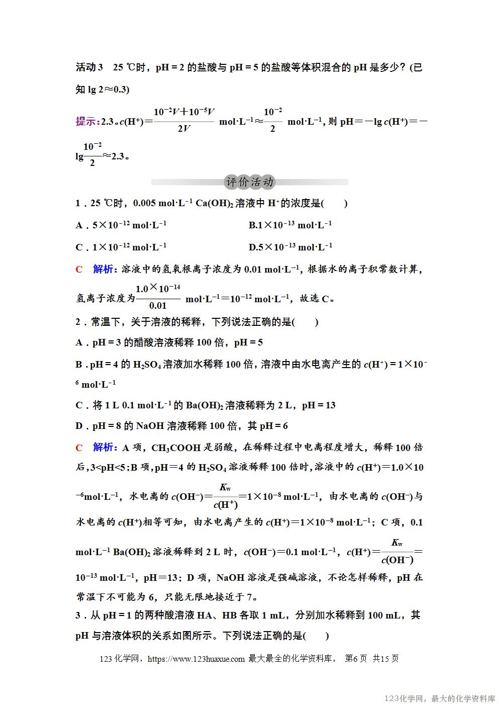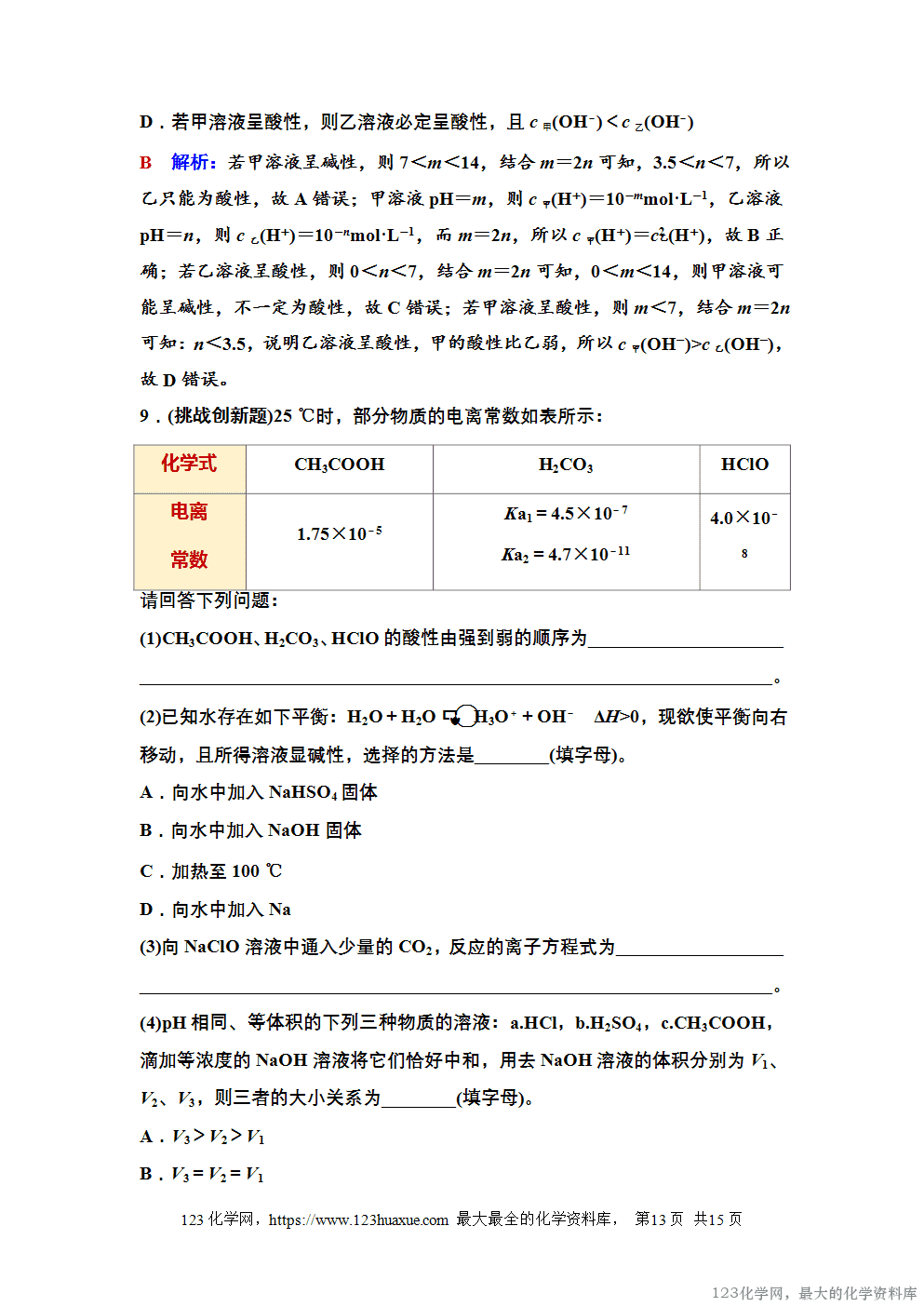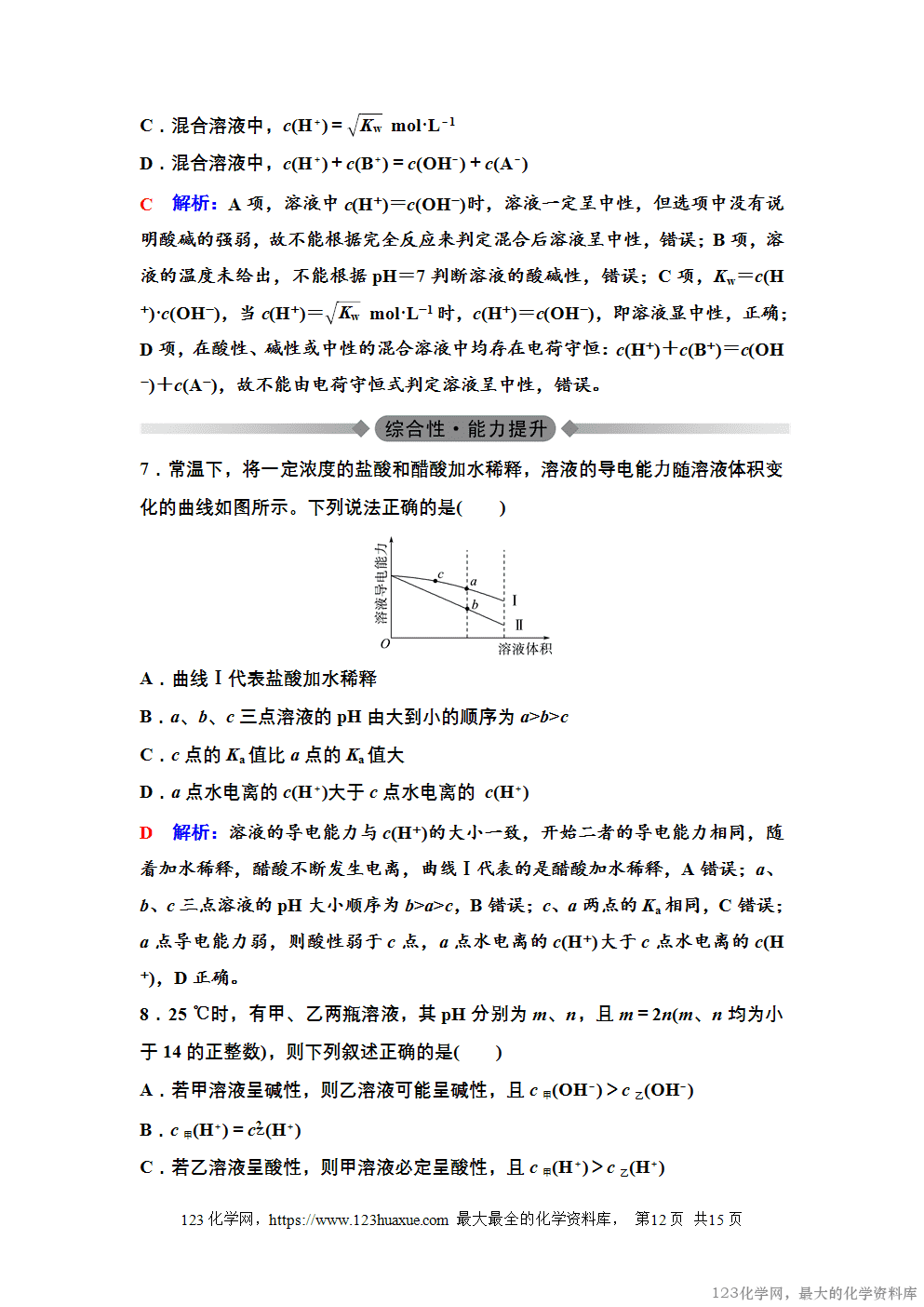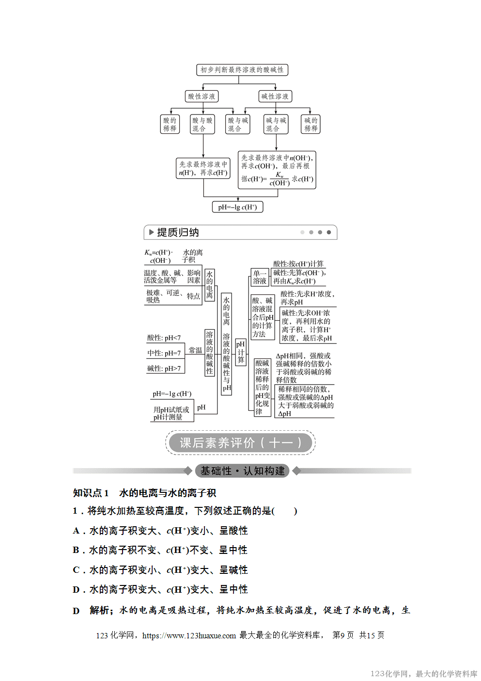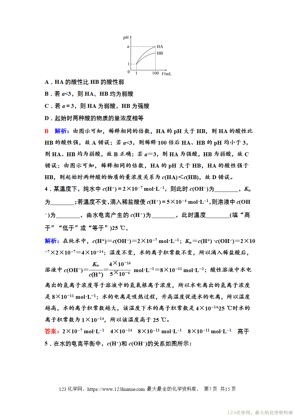 提示:Kw=c(H+)·c(OH-)中,c(H+)、c(OH-)不一定都是水电离出来的。在酸或碱溶液中水电离出的c(H+)与c(OH-)相等。