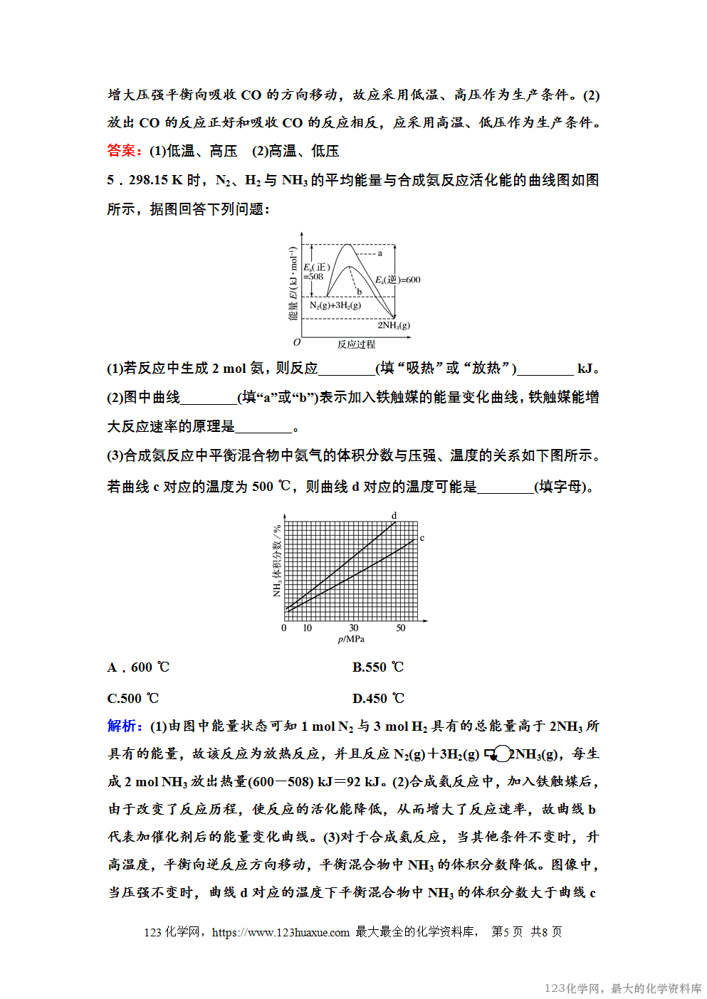 (2)在合成氨实际生产中,一般采用的温度为400~500 ℃。