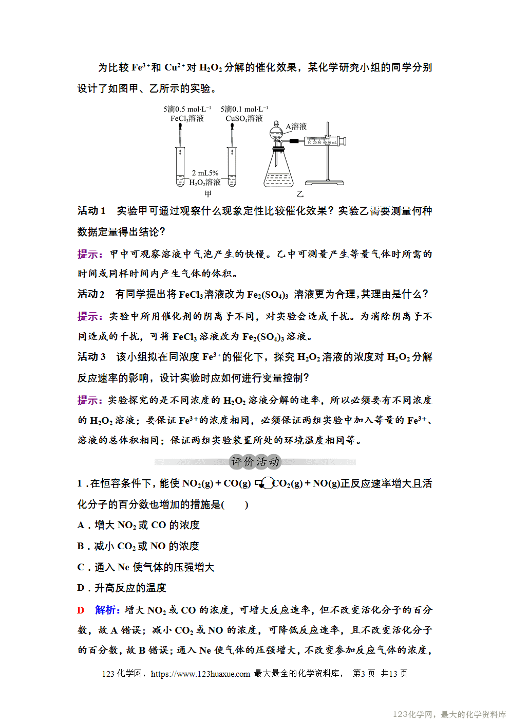 活动1 实验甲可通过观察什么现象定性比较催化效果?实验乙需要测量何种数据定量得出结论?