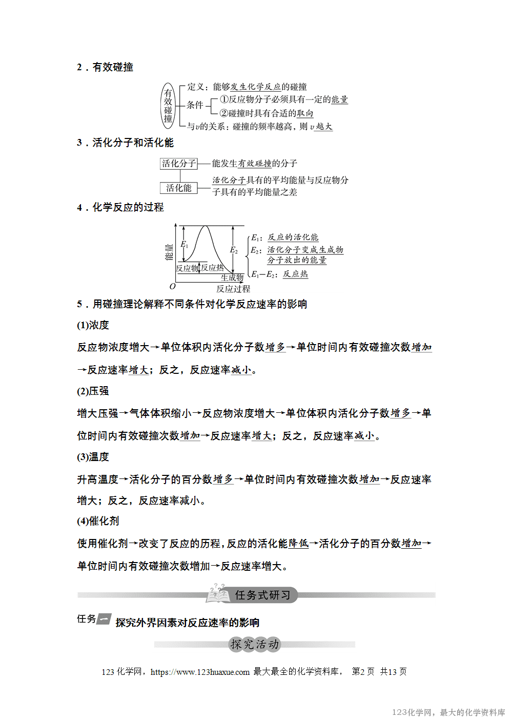 3.能用一定的理论模型说明外界条件改变对化学反应速率的影响。