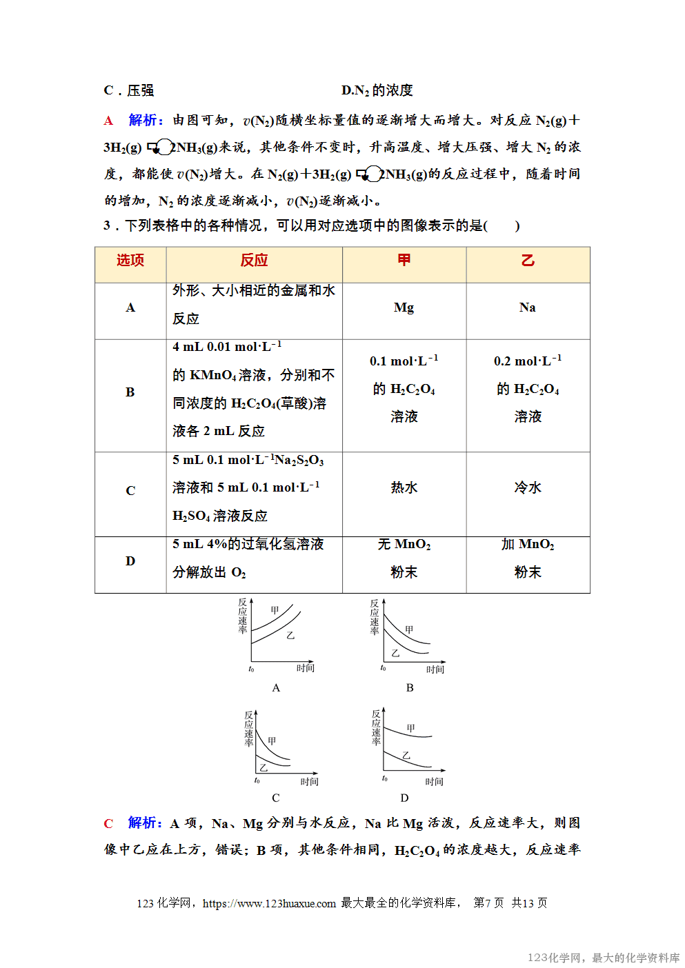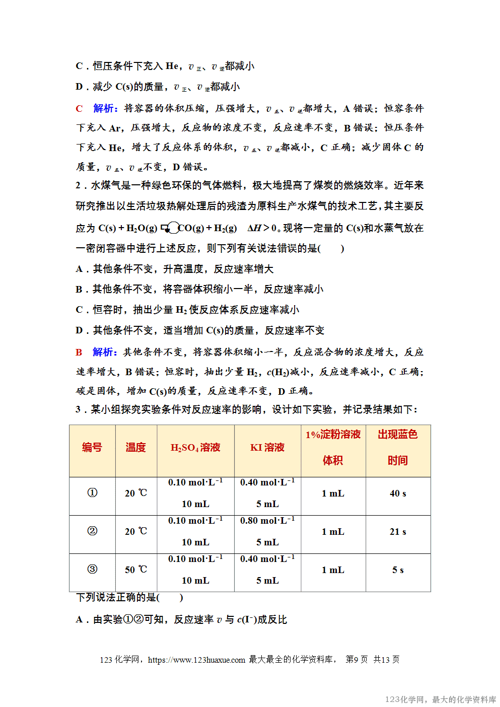 2.外界条件(其他条件不变,只改变一个条件)
