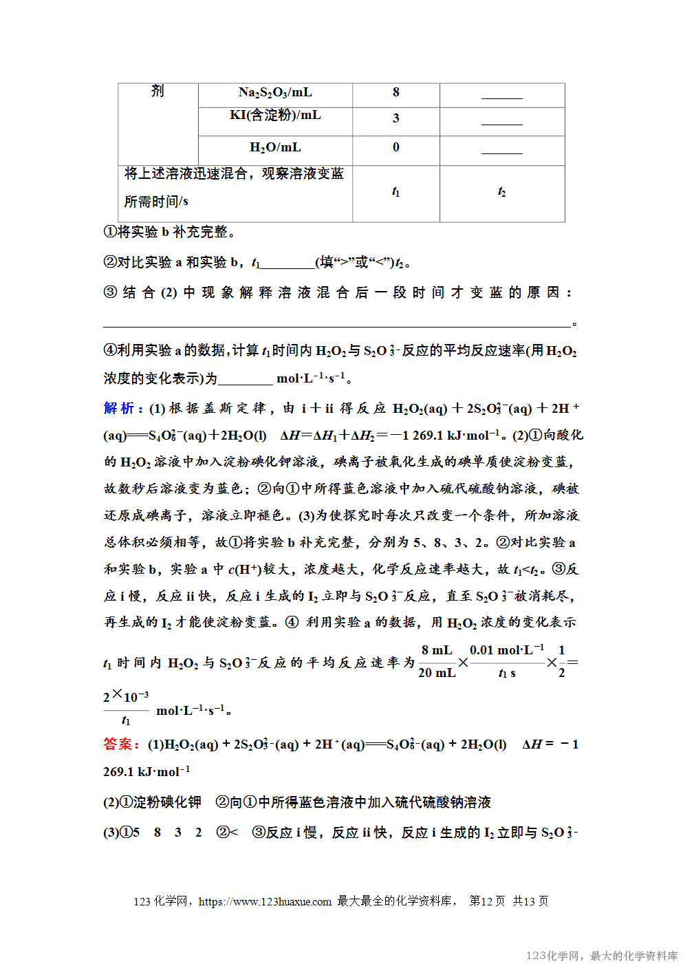 探究外界因素对反应速率的影响