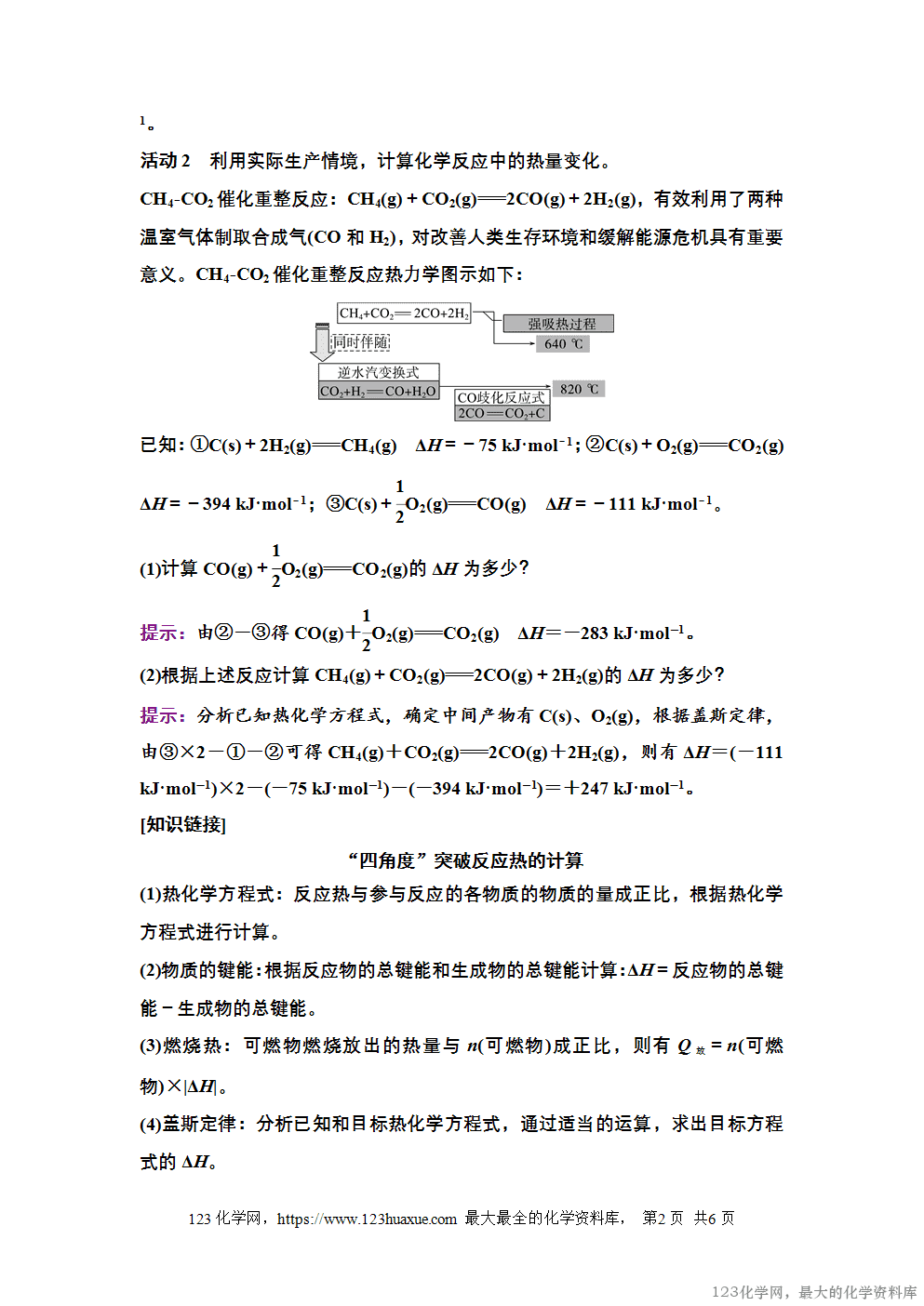 (2)根据上述反应计算CH4(g)+CO2(g)===2CO(g)+2H2(g)的ΔH为多少?