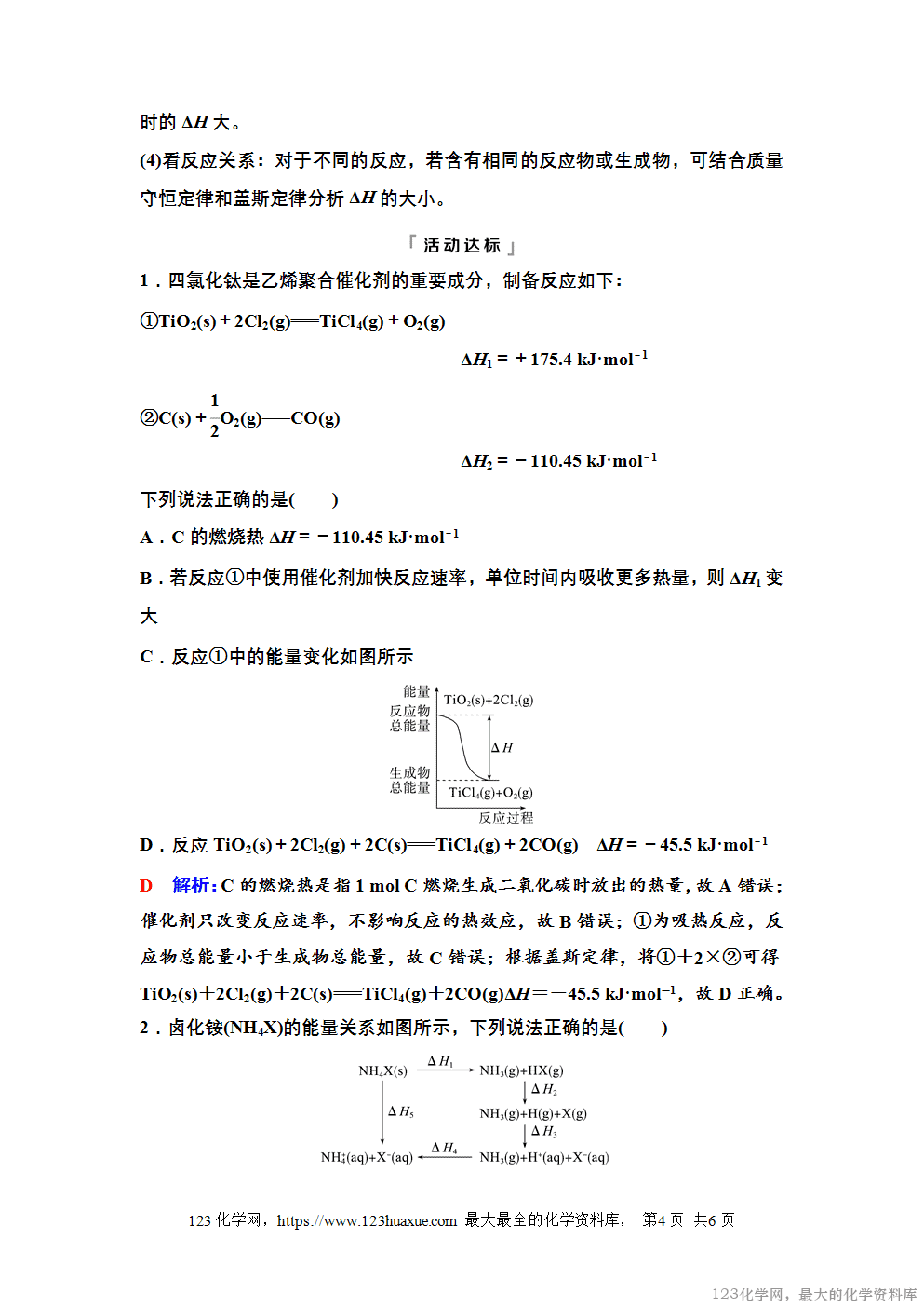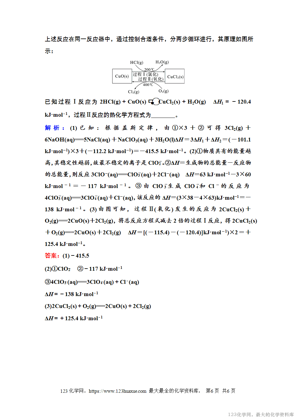 提示:ΔH=[(413×4+745×2)-(2×1 075+2×436)] kJ·mol-1=+120 kJ·mol-1。