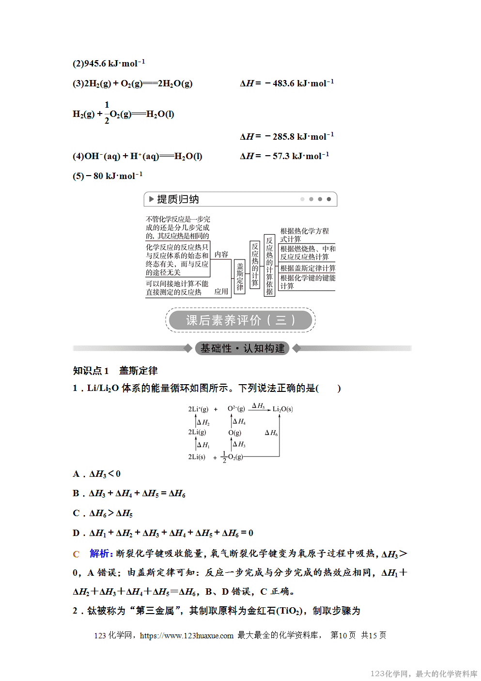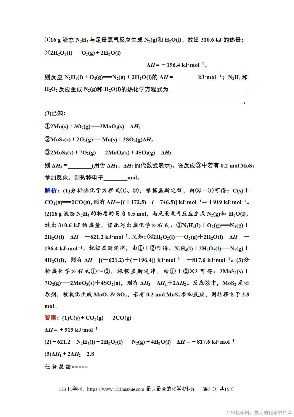 (1)化学反应的反应热只与反应体系的始态、终态有关,与反应的途径无关。