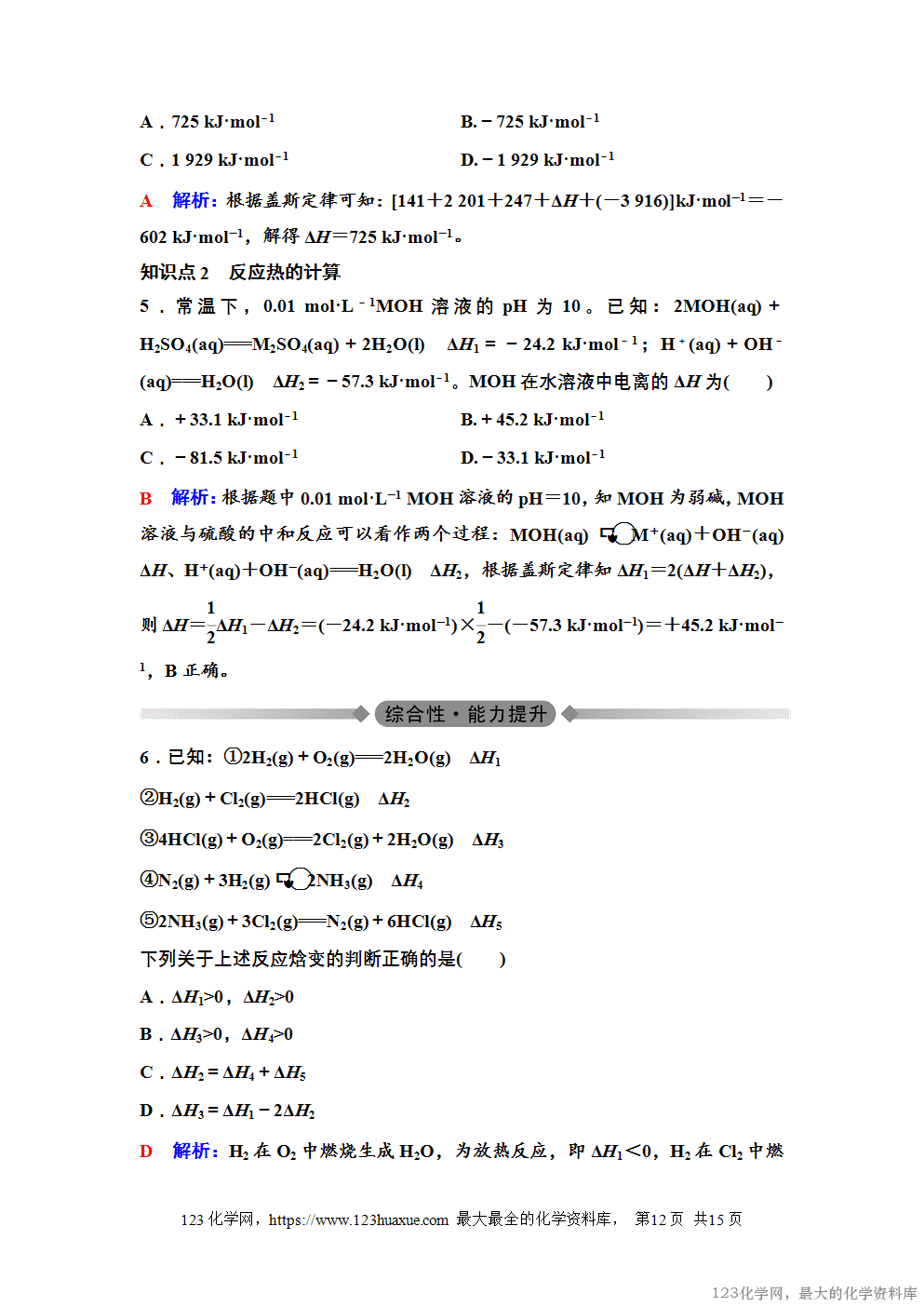 则ΔH=ΔH1+ΔH2=ΔH3+ΔH4+ΔH5。
