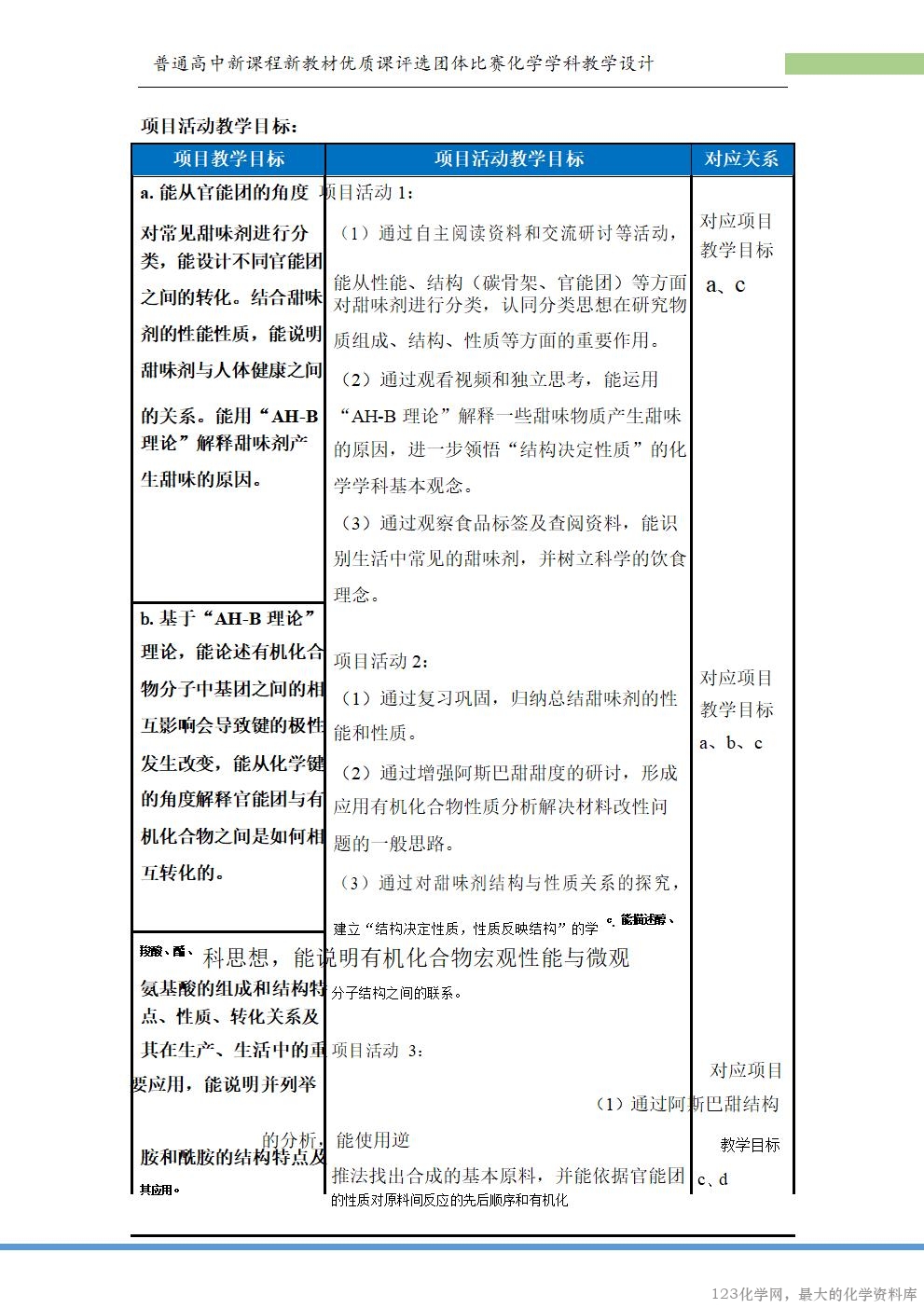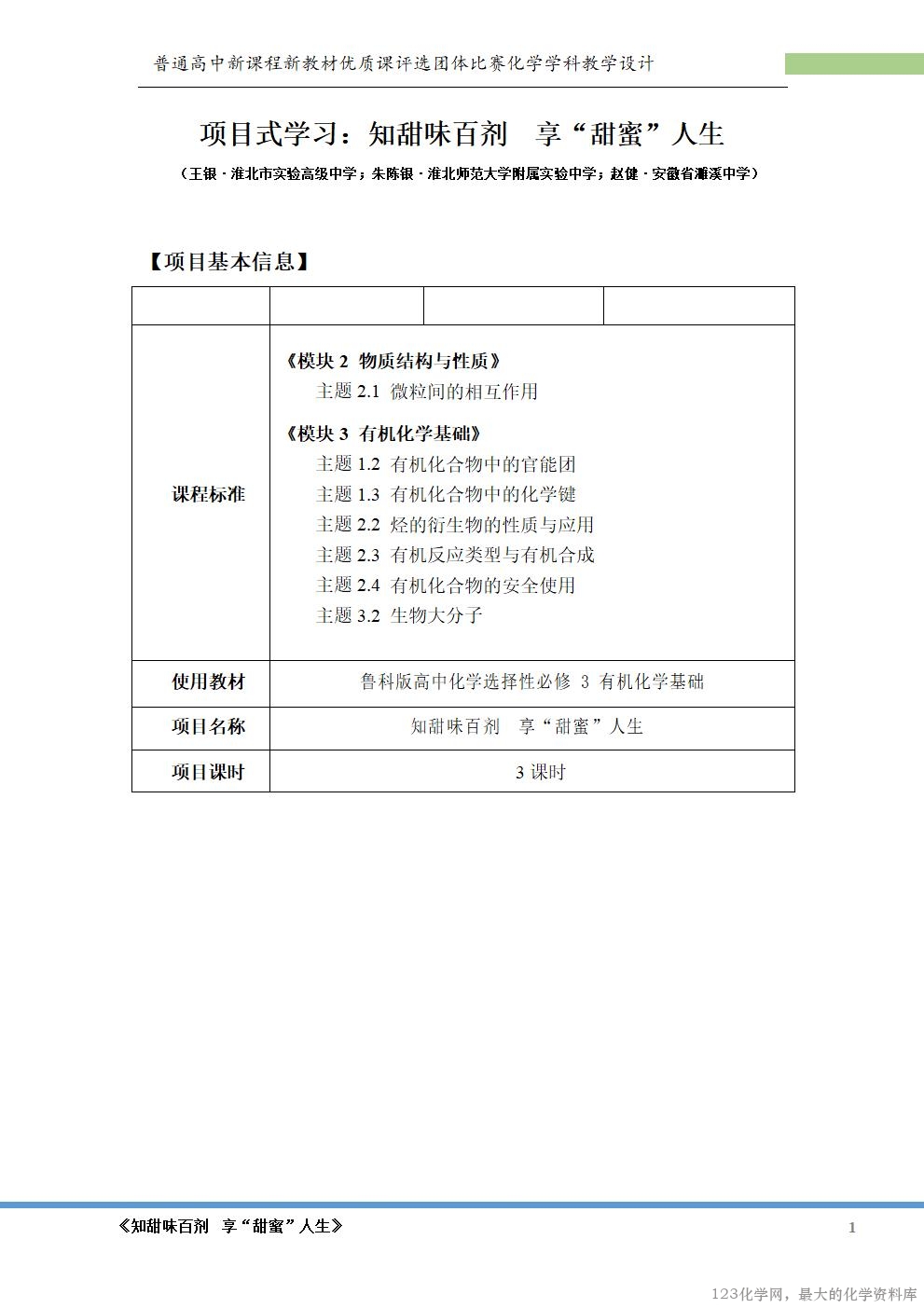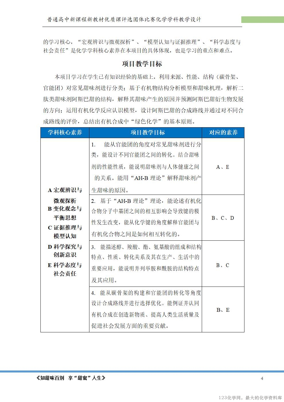 的兴趣。本项目旨在通过认识甜味剂的结构、合成阿斯巴甜等活动,培养学生的