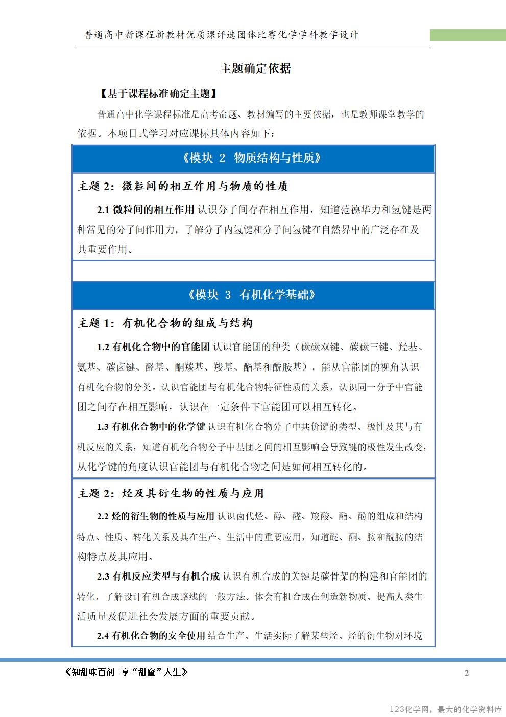 普通高中新课程新教材优质课评选团体比赛化学学科教学设计
