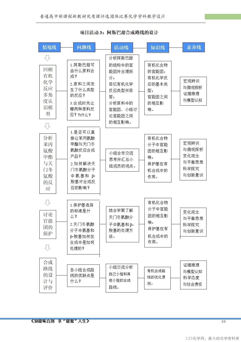 的方向;运用有机化学反应认识模型,设计阿斯巴甜的合成路线并通过对不同合