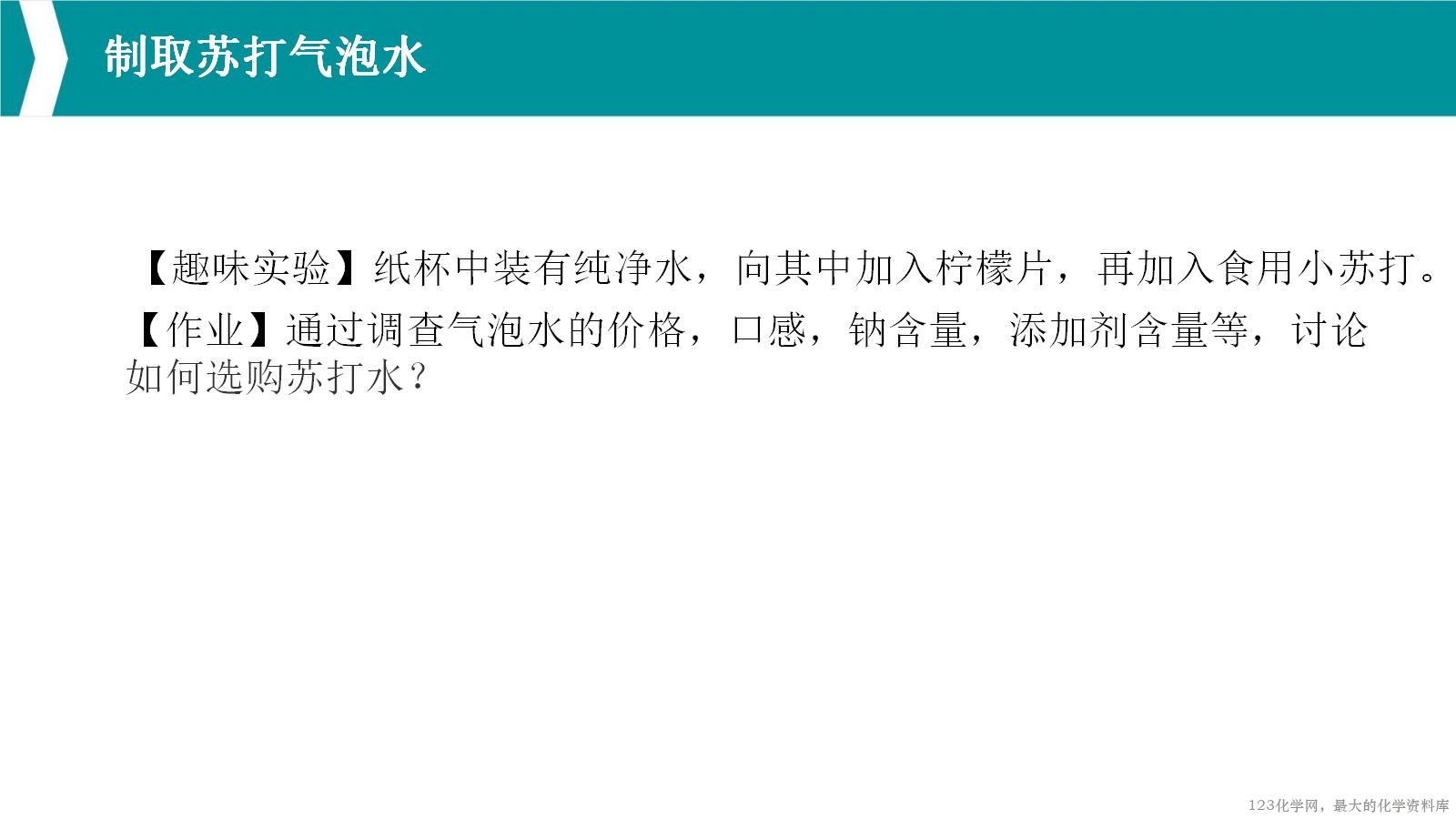 4、通过动手操作制备出一杯苏打水,感受化学与社会生产生活的相互融合,体