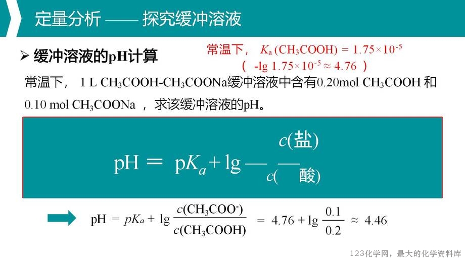 3. 通过缓冲溶液 pH 计算公式的推导,培养学生的逻辑思维推理能力和科学计算能力;
